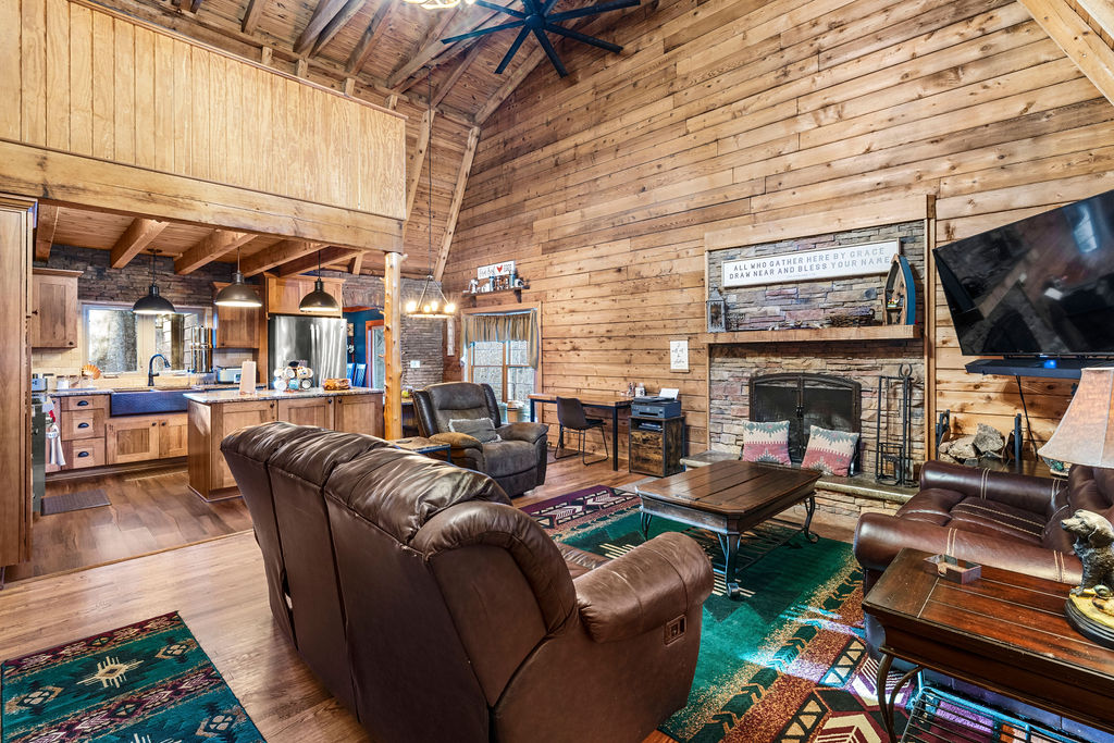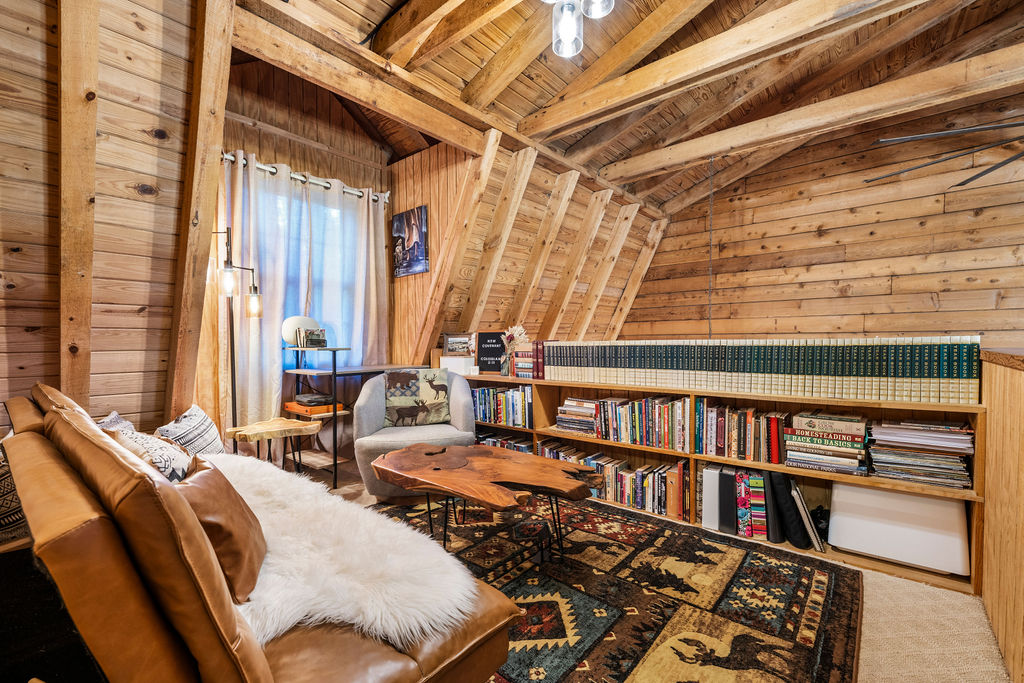 - Beautiful red cedar log home with metal roof and vaulted ceilings