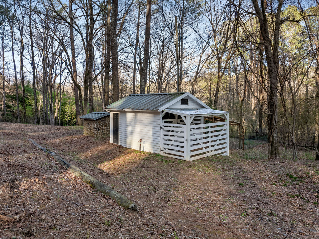 - Chicken coop with automatic doors, goat/sheep barn with storage closet, and dog house