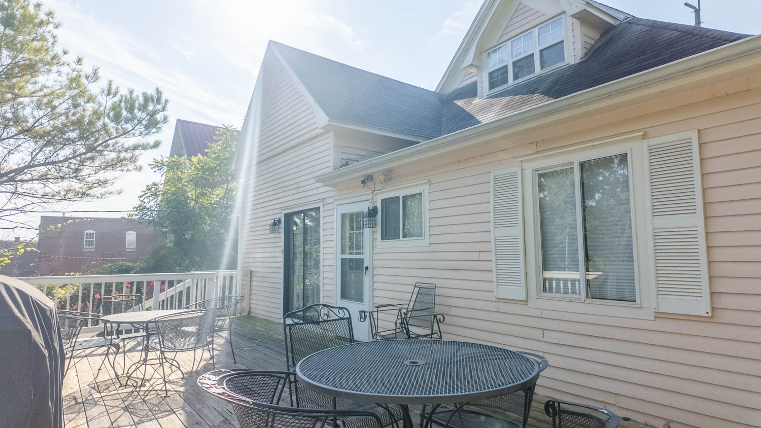 Step back in time with this enchanting Victorian-style home, proudly standing for more than a century. Built prior to 1909—as evidenced by its presence in a historic photo of the neighboring church’s construction—this residence blends timeless architecture with modern comforts. A classic wraparound front porch welcomes you, ideal for morning coffee or simply watching the charm of small-town life pass by. Inside, the spacious living room serves as the heart of the home, featuring soaring 10-foot ceilings and hardwood flooring reclaimed from a local shop—adding its own story to the home’s legacy. The living room flows seamlessly into the dining area, where you’ll find access to a guest bedroom, laundry room with outside entry, and a kitchen boasting abundant cabinetry and updated appliances including refrigerator, stove, microwave, and dishwasher. Step out from the kitchen to the back deck, perfect for grilling, entertaining, or relaxing in the shaded backyard.