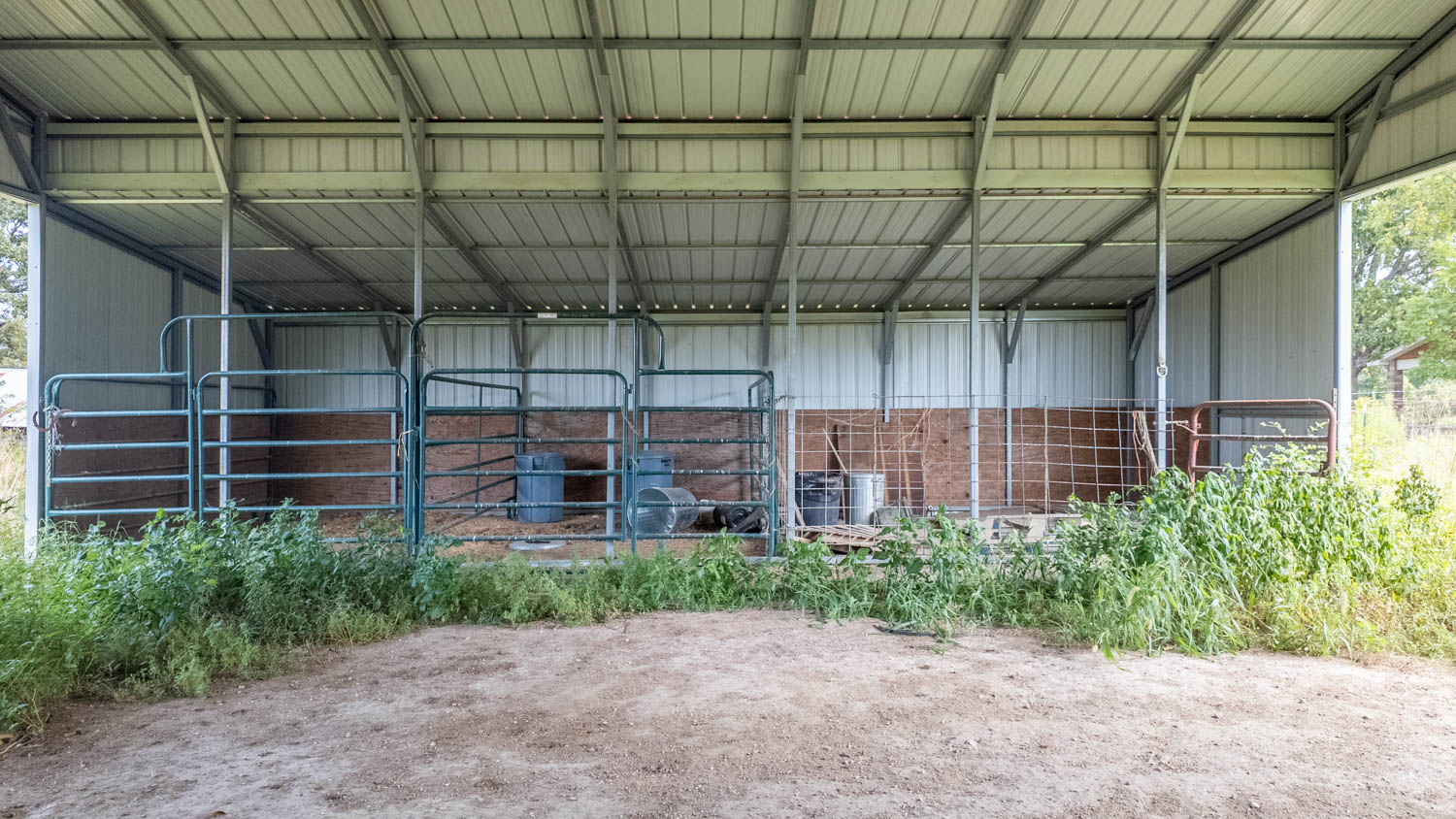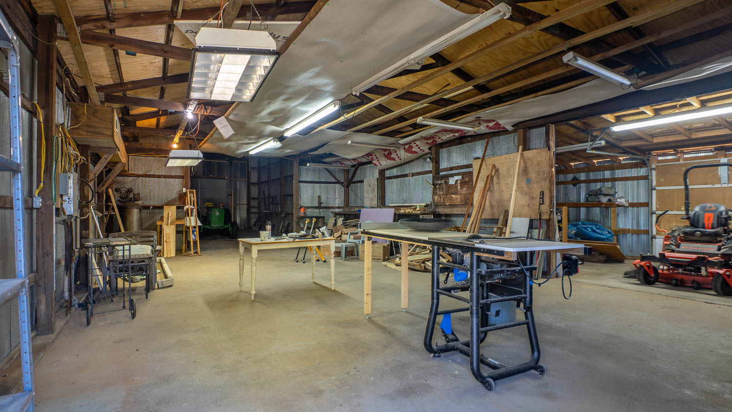 Equestrian facilities include a horse barn with 5 stalls, a feed room, and additional storage, plus another older barn for equipment. The impressive shop spans over 3,000 sq ft under roof, equipped with 220 electric, air lines, and four bay doors (one 10' tall). Multiple wings offer versatile storage, and living quarters could easily be finished. A new French drain enhances drainage on the south side.
