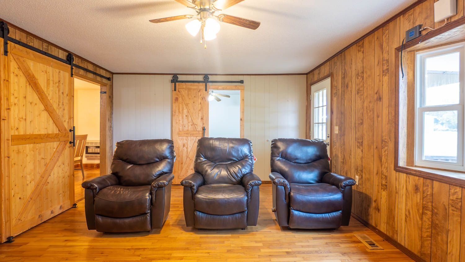 The property includes a spacious laundry room, a covered front porch, and numerous improvements such as updated electrical, new gutters, and high-efficiency water heaters. Outside, the land offers approximately 24 open acres, ideal for grazing or hay production, plus 4 ponds and a wet-weather creek along the northwest boundary.