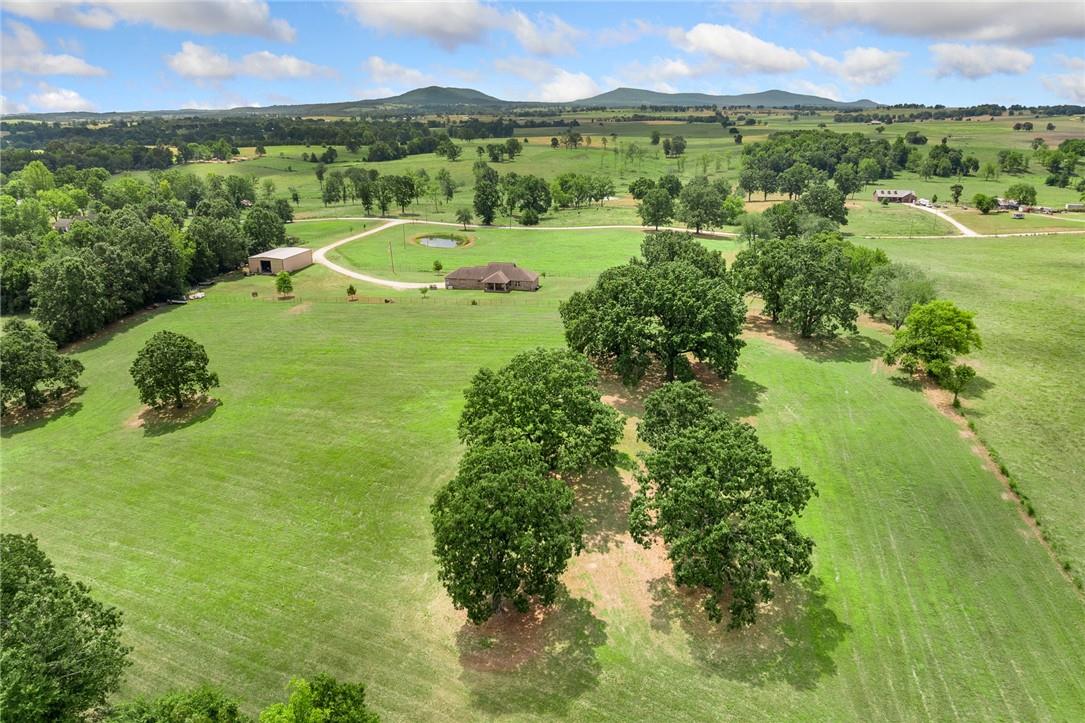 Newer brick home on 16 acres in the Valley Springs School District with a peaceful, park-like setting. This 2 bed, 2 bath home plus office features hardwood floors, granite countertops, gas fireplace, large closets, excellent storage, and a spacious laundry room. The primary suite offers a walk-in tiled shower. Enjoy a covered front porch with views of Boat Mountain and a tiled back patio for relaxing or entertaining. Updates include a new HVAC in 2022, plus natural gas, Generac backup generator, and a storm shelter inside the 2-car garage. Outside you’ll find a 40x60 insulated red iron shop with concrete floor and ½ bath—bring your boat, RV, or SxS, there’s room for it all! The property also offers a pond, corral, and over 3,500 ft of pipe fencing. Conveniently located on a paved road less than 5 miles from downtown Harrison, this property is move-in ready and built for both comfort and functionality.