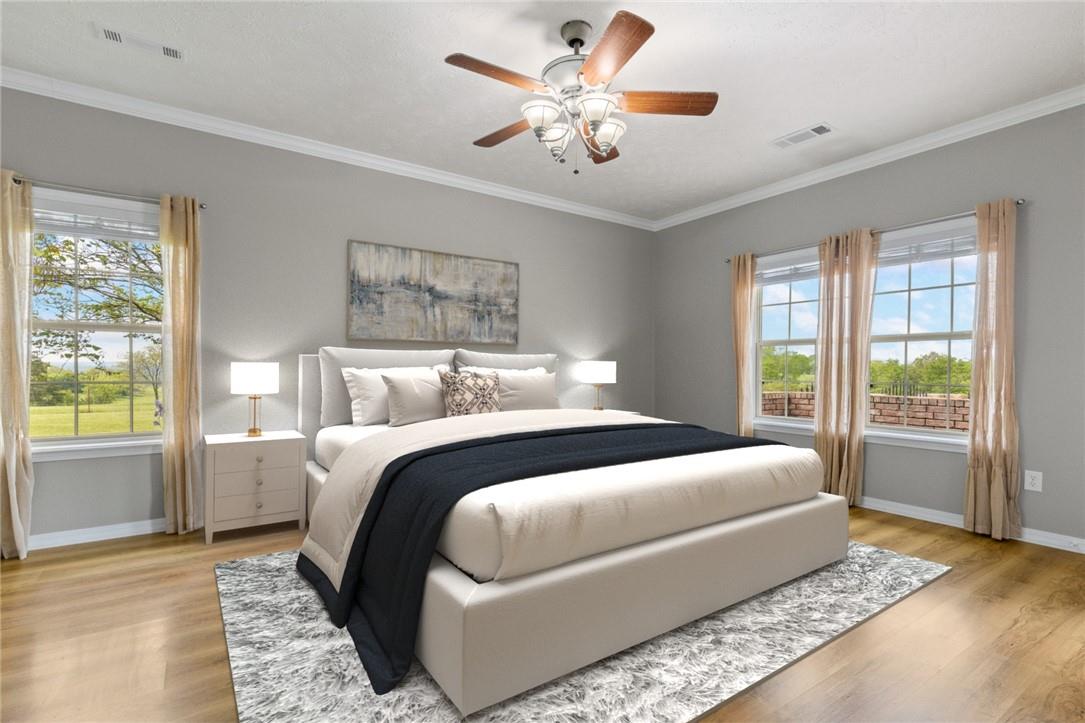 Spacious and full of potential, this 3,203 sq ft brick home sits on 4 acres in the heart of the Ozarks, with beautiful views of Boat Mountain. Located in Boone County, this property offers the best of country living while keeping you close to town. Inside, you’ll find 3 oversized bedrooms, each with its own private bathroom, plus a guest half bath. The kitchen is built for both everyday living and entertaining, featuring oak cabinetry, double ovens, and more storage than you could ever need. A formal dining room and large living area give you plenty of room to gather. The primary suite offers a huge walk-in closet and a jacuzzi tub for relaxing at the end of the day. Step outside to a massive back patio made for hosting, with views you'll appreciate year-round. A pool house is already in place-just waiting on you to create the backyard oasis you've been dreaming about. There's also a greenhouse ready for your garden projects. This home has been cared for and maintained, and now it's ready for you to make it yours.