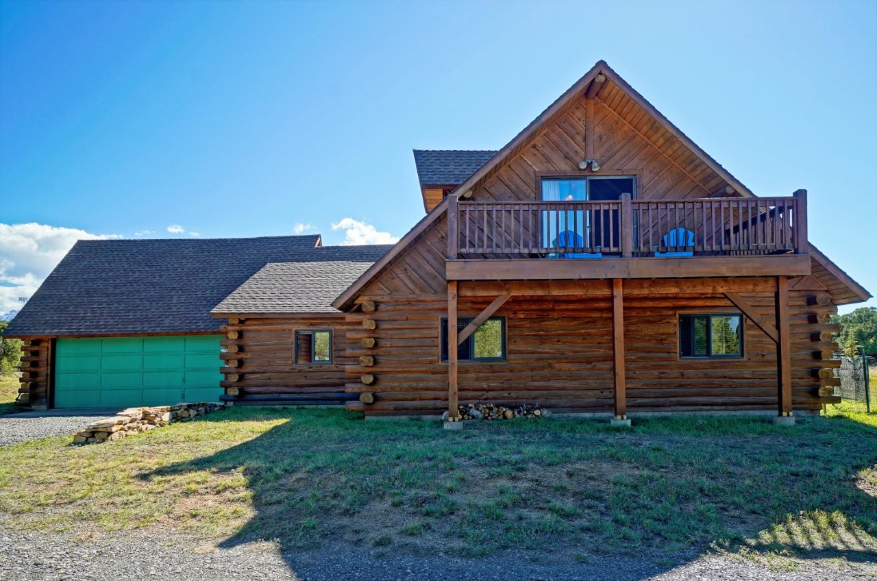 Upstairs, the private primary suite offers its own full bath and a deck with panoramic views that stretch from the Grand Mesa to the Cimarrons to Horsefly Peak. Morning coffee or evening stargazing here will quickly become your favorite rituals. The oversized log-crafted garage with vaulted ceilings offers incredible flexibility—already beautiful for vehicles, but easily adaptable into additional living space or even a loft.