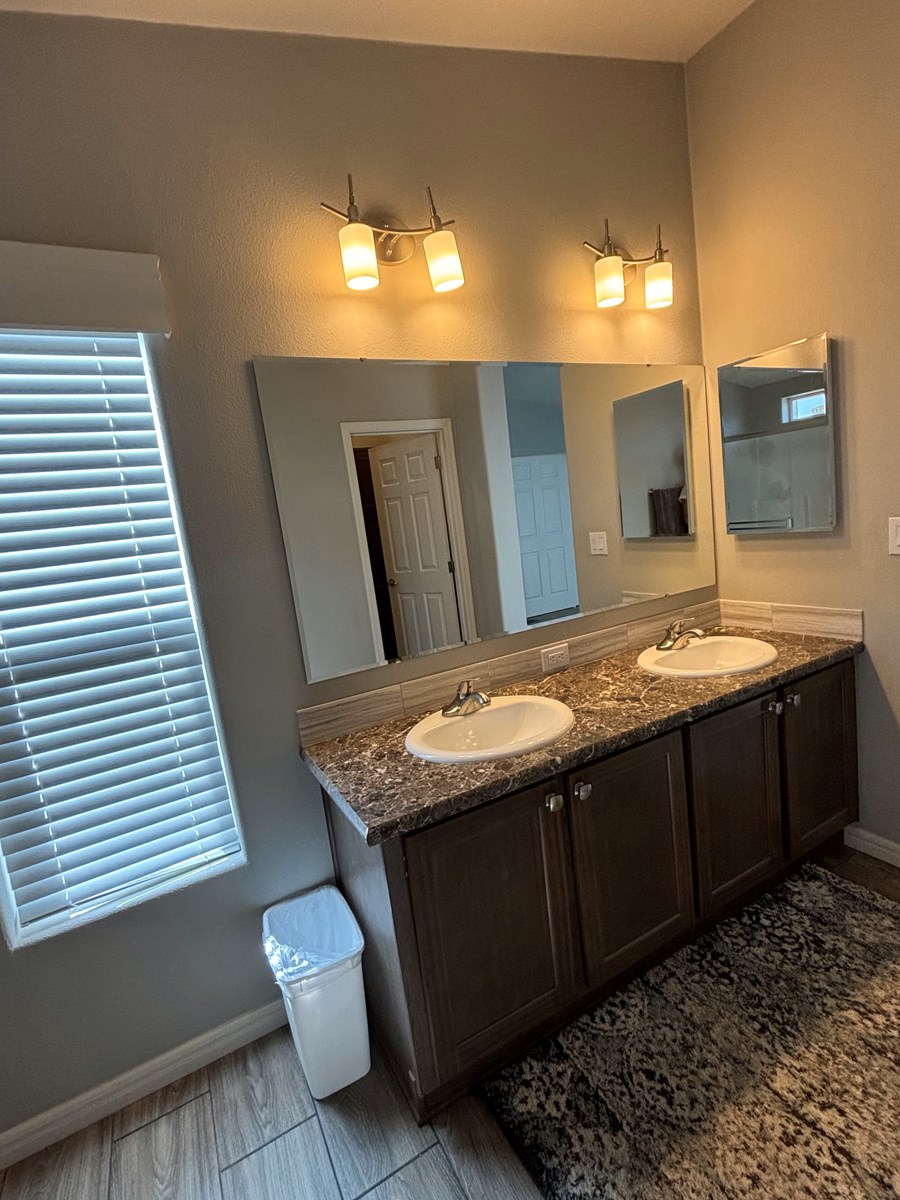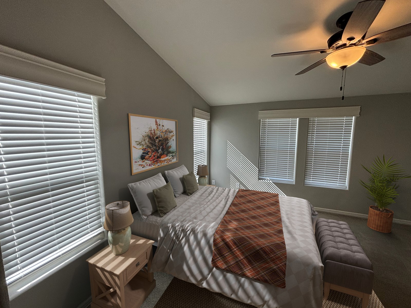 This 4 bedroom, 2 bathroom home has a beautiful open concept in the kitchen, living room, and dining room. The spacious primary bedroom with en suite bathroom and walk-in closet feels like a retreat and separate from the other 3 bedrooms of the home.