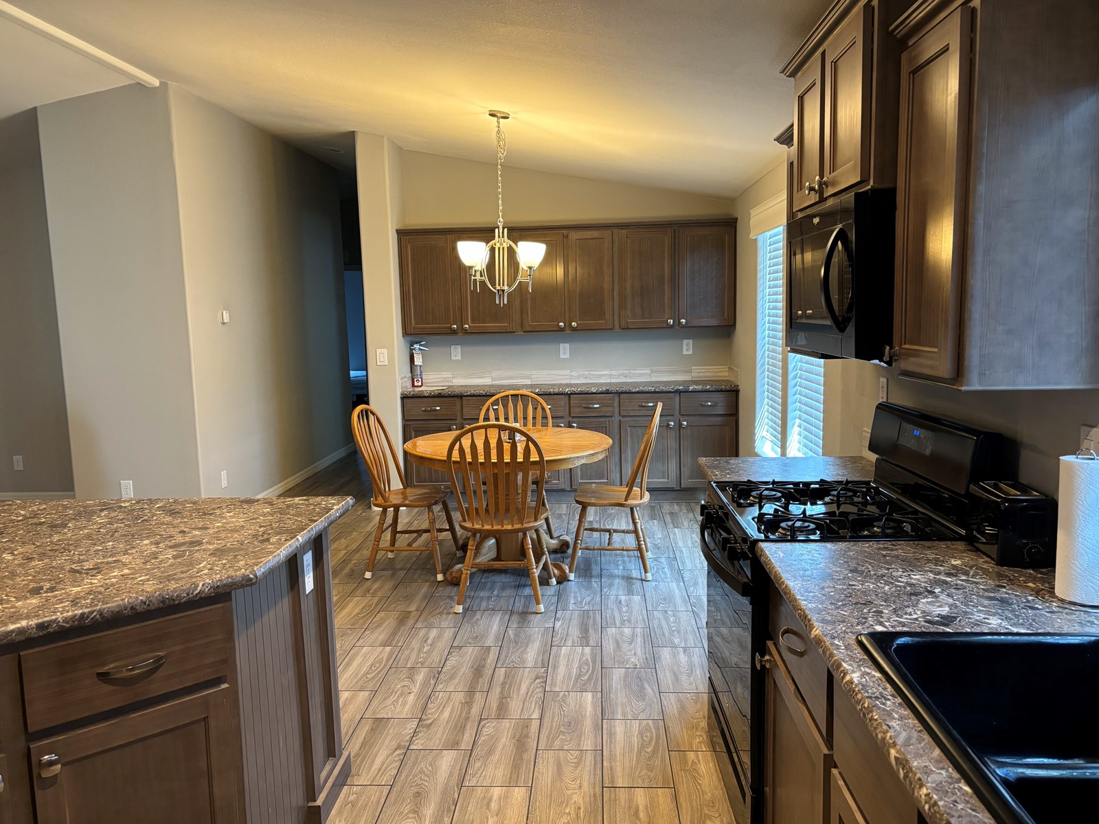 The kitchen is nicely appointed with a center island for stool seating or enjoy the dining area and cabinetry for plenty of storage.