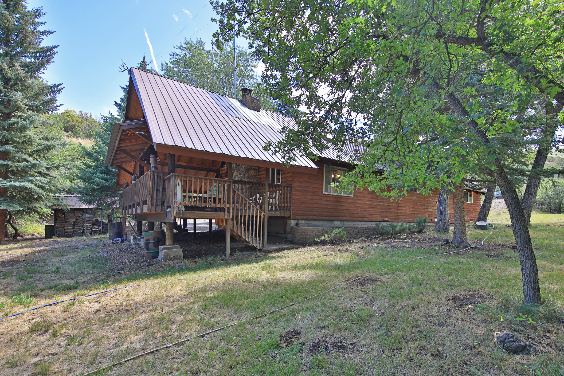 Drive scenic country roads to this Colorado mountain log cabin with acreage in beautiful Molina, Colorado. The property is nestled in a private valley surrounded by mature pine and shade trees. The properties 36.33 total acres are fully fenced, with year-round Cottonwood Creek running through the land, offering natural beauty and a peaceful mountain setting. This 1½-story, 2,160 sq ft log cabin includes 4 bedrooms, 2 full baths, and is designed for comfort and convenience with updated features ideal for year-round mountain living. A large wood deck with vaulted roof, pine ceilings, and exposed beams make a perfect entry into your open-concept interior. Inside, pine walls and vaulted ceilings with beams enhance the mountain charm. The spacious kitchen includes ample counter space, wood cabinetry, double-door refrigerator, glass-top electric range, microwave, and double sink—offering plenty of room for cooking and gathering. The rock fireplace with wood stove insert creates a cozy atmosphere for chilly Colorado mountain days and nights. The side entry leads into a large foyer with a hall closet. A walk-through full bath connects to the spacious primary bedroom, which features carpet and a double-door closet. Two additional bedrooms on the main level also include carpet and double-door closets. The conveniently located laundry room includes a stackable washer and dryer, utility sink, counter, cupboard, and additional storage space. A hallway closet and a tiled full bathroom complete the main floor. Wood stairs lead to the loft, which includes two separate rooms. One is a carpeted sitting area—or optional bedroom space—featuring an efficient kitchen with a sink, mini fridge, counter, cupboards, and microwave, along with under-eave storage and a private balcony overlooking the property with Grand Mesa views. The second room overlooks the main floor and provides space for additional beds, an office, or storage. Outside, there’s a 16x13 metal storage shed with a slanted roof and double doors, sitting on a concrete pad. A covered firewood bin and brick raised garden/flower bed add functionality and charm. The property also features a mountain grass lawn, and numerous trails, roads, and clearings throughout—perfect for hiking, hunting, riding ATVs, or simply enjoying the outdoors. Relax to the sound of rushing mountain water and the soft breezes moving through towering pine trees. Enjoy peace, privacy, abundant wildlife, and space—all while being about 30 minutes from the historic towns of Collbran and Mesa, and about an hour from the I-70 corridor leading to major towns, attractions, and destinations across the Western Slope of Colorado.COLORADO MOUNTAIN LOG CABIN WITH ACREAGE FOR SALE