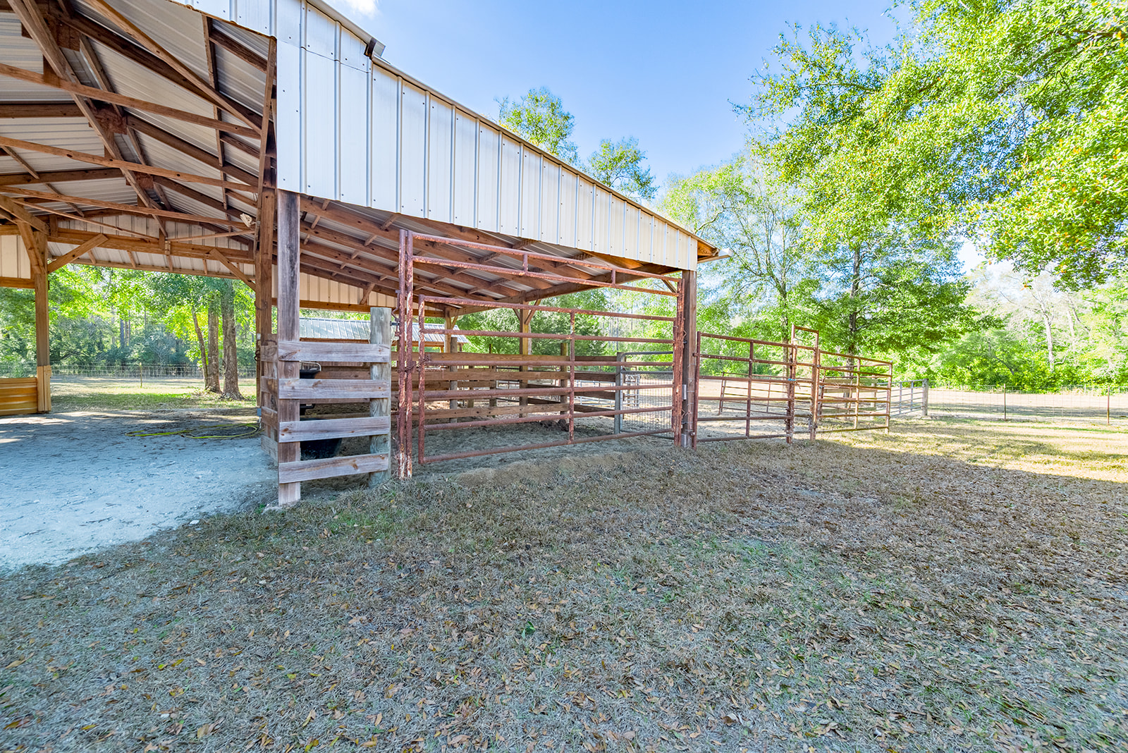 Enjoy Florida’s mild climate on the screened front porch or take a refreshing dip in the in-ground pool, which is also protected by a screened enclosure. The outdoor kitchen invites alfresco dining and gatherings, perfect for hosting friends and family. A spacious pole barn stands ready for equipment storage or hobby space, adding practical value to the property.