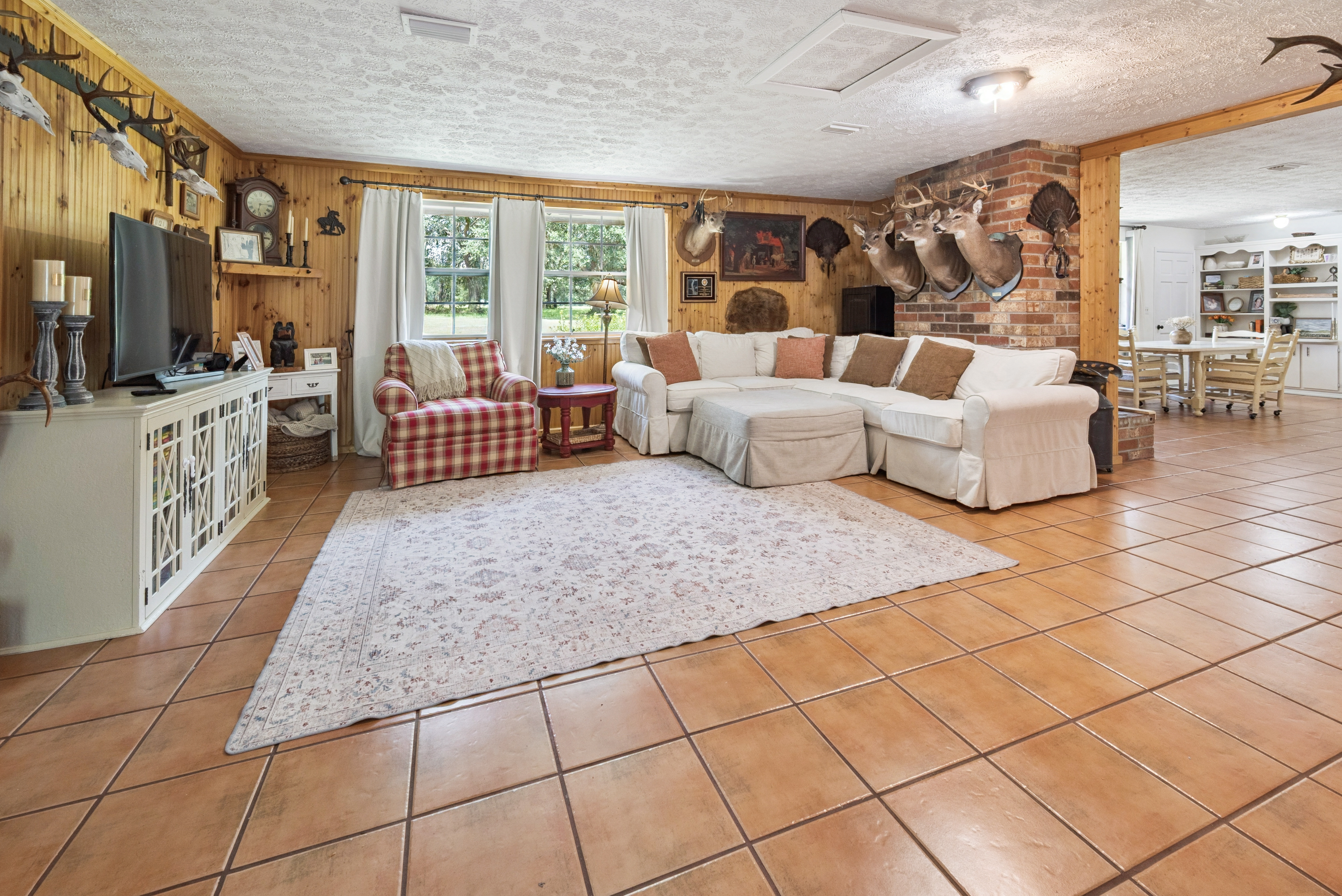 This updated home is designed for comfortable country living, featuring beautiful tongue and groove walls, durable tiled floors, and a functional layout with spacious rooms.