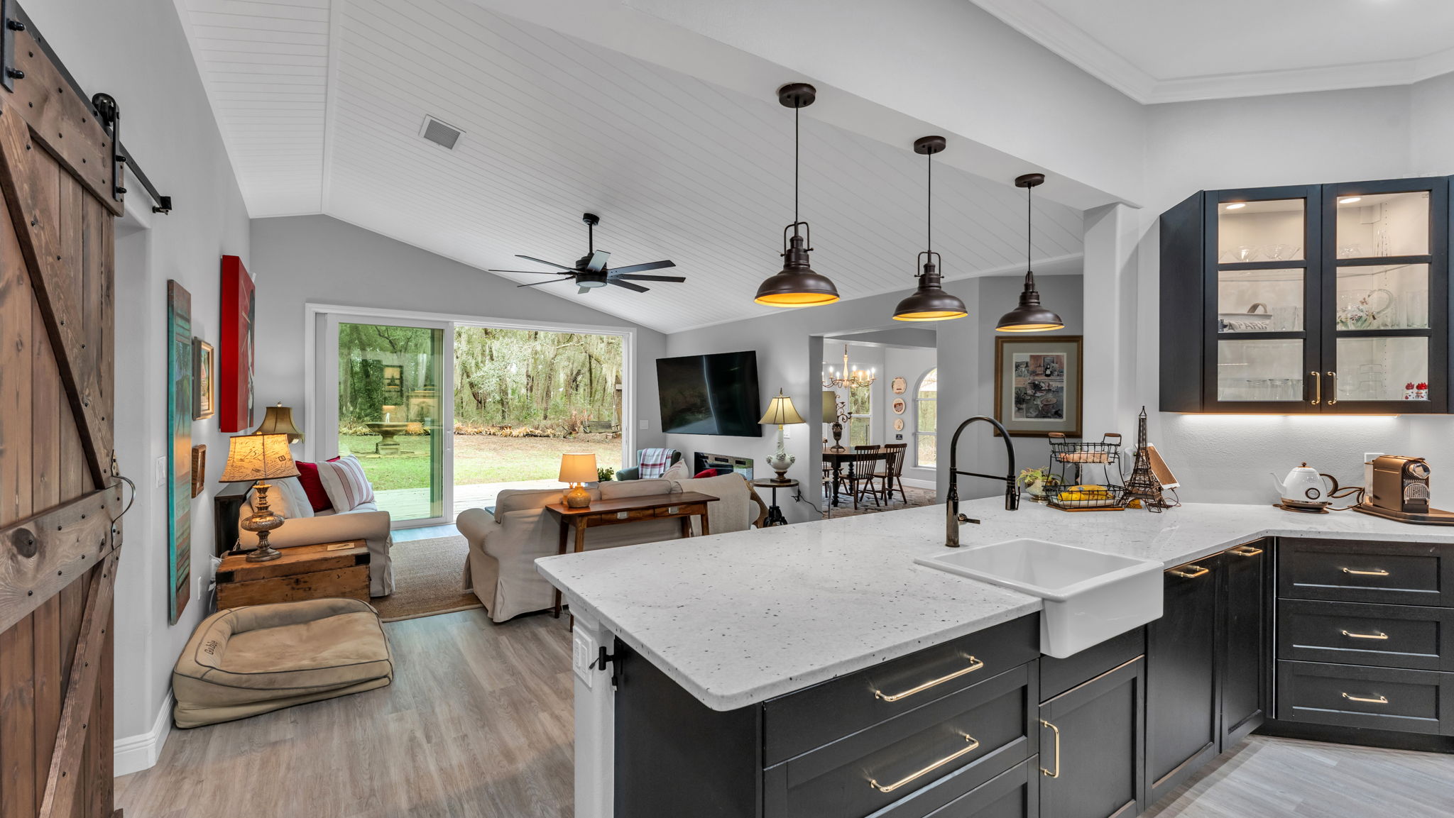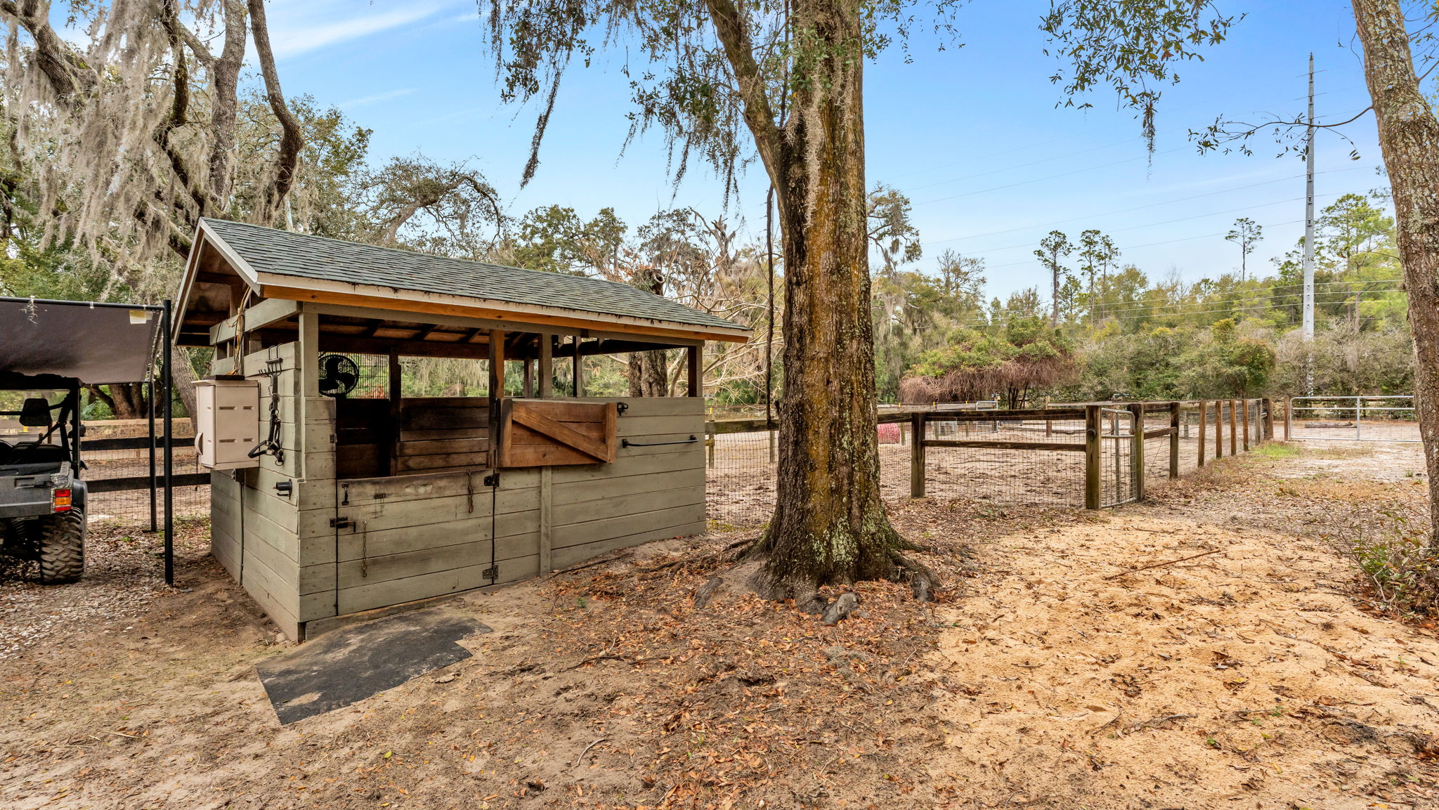 A horse lover’s dream. A private retreat. A place where luxury meets the rhythm of the riding lifestyle. Set in the natural beauty of Apopka, this exquisitely remodeled equestrian estate offers rare direct out the gate access to miles of scenic trails along the West Orange Trail . Ride at sunrise. Entertain at sunset. Relax in spaces designed for effortless indoor-outdoor living. From the elegant residence to the thoughtfully appointed barn and arena, every detail has been curated for those who expect more than a home — they expect an experience, a lifestyle. Inside, the completely remodeled 3-bedroom, 2.5-bath residence blends modern sophistication with warm, inviting character. Luxury vinyl flooring, new double-pane windows, triple pocket sliding glass doors opening from the living room to the deck, creating a quiet and relaxing retreat with a wooded setting behind the home proving a sense of calm and seclusion. A striking electric fireplace featured wall create a refined yet comfortable atmosphere throughout. The heart of the home is the designer kitchen, where timeless craftsmanship meets functionality. An integrated dishwasher blends seamlessly into custom cabinetry, a induction cook top, and a built-in convection oven and microwave, expansive granite countertops, and a large farmhouse sink make both entertaining and everyday living effortless . Rich wood cabinetry — including beautiful glass-front details — and a spacious walk-in pantry provide both elegance and abundant storage. The primary suite serves as a true private sanctuary with direct access to the expansive outdoor deck. The spa-inspired bathroom features stunning subway tile in the steam shower, dual vanities, a heated towel rack, and a large walk-in closet complete with built-in drawers, creating a space that feels both luxurious and highly functional. Outdoor living is exceptional, anchored by an expansive 1,500-square-foot deck designed for year-round enjoyment. Electric screens, a built-in hot tub, and peaceful views create the perfect setting for relaxing or entertaining, while a custom backyard treehouse adds charm and versatility to the property. Designed for the serious equestrian, the property offers 5 stalls, 4 in a well appointed barn with runouts, water access, fans in each stall and in the breezeway, tack room with A/C and built-in lockers, feed and hay rooms, and additional storage. The 5th stall is a small independent barn. The Olympic-size arena — complete with lighting and new masonry sand — offers an ideal environment for training and riding. Direct trail access from both the driveway and rear of the property allows you to enjoy miles of bridal paths connected to West Orange Trail and the nearby Clarcona Horse Park . Major system upgrades provide peace of mind, including updated HVAC, plumbing, water systems, a hardwired generator, EV hookup, and meticulously maintained infrastructure throughout. With a 1-car attached garage and a separate 2-car garage, the property seamlessly blends practicality with luxury. This is more than an equestrian property — it is a rare lifestyle opportunity where refined living, privacy, and the joy of horses come together in perfect harmony. Close to SR 429 and downtown Orlando. Also only 1.5 hours to the World Equestrian Center in Ocala and 3.5 hours to Wellington International.