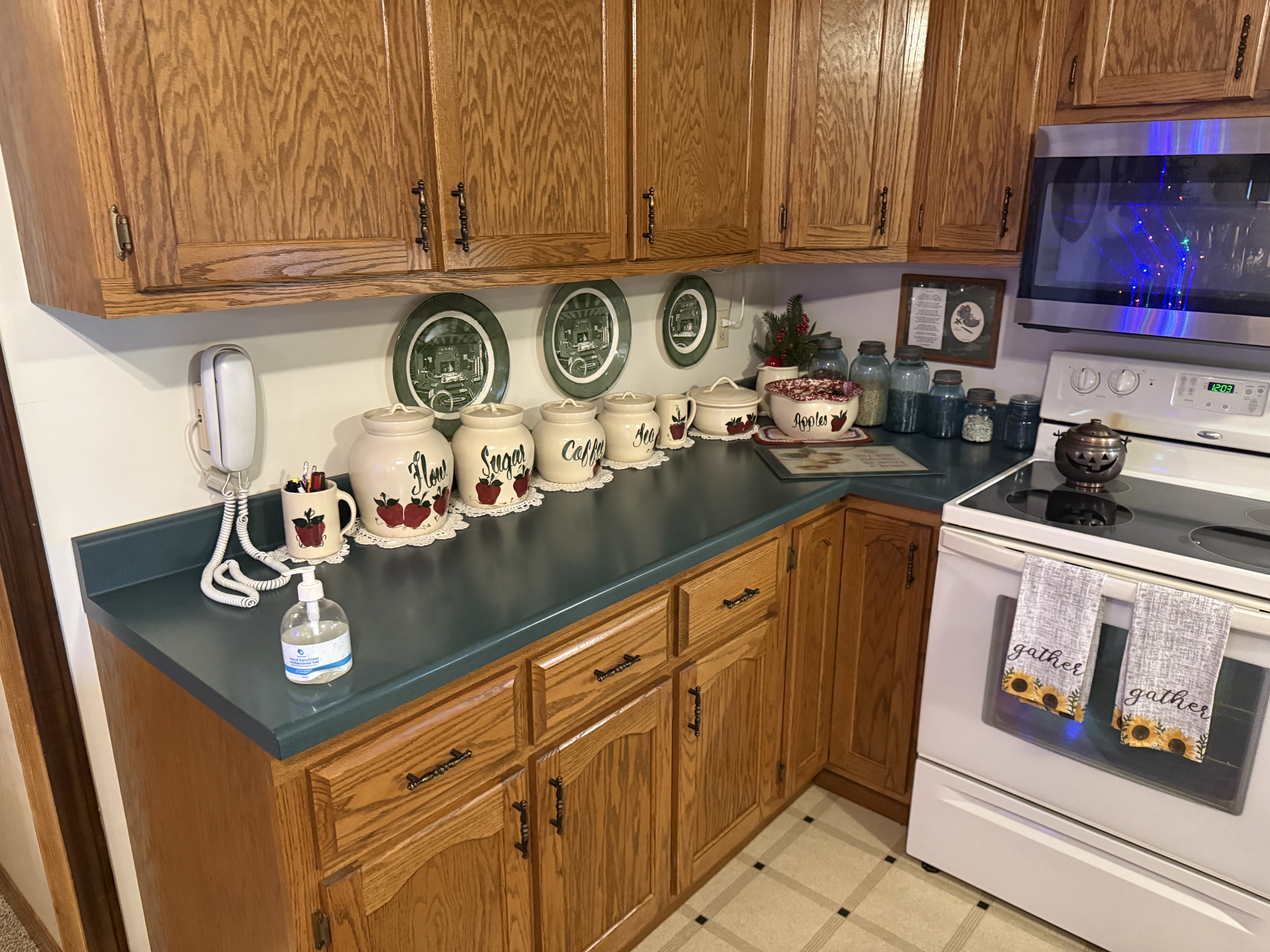 Step through the front door into the inviting living room, leading to a second family room with a dining area and kitchen boasting ample cabinet and counter space, including a kitchen island. The appliances stay with the home, featuring a stove, refrigerator, microwave, and dishwasher.