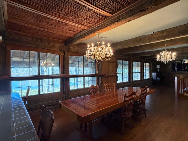 A large wraparound covered porch (1,650 sq ft) invites you to enjoy peaceful river views and the surrounding natural landscape. Additional features include a private boat launch, and a 3,600-square-foot barn.