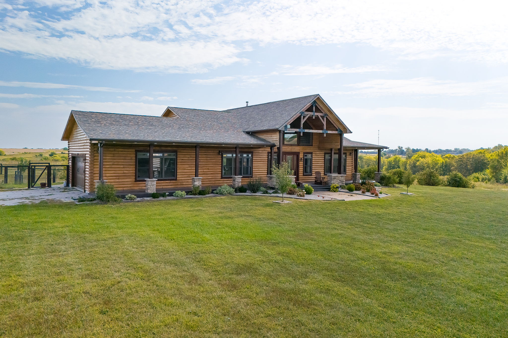 As I turned onto the winding lane, I couldn’t help but smile at the stunning property before me. While I have listed incredible homes before, this one was different. The Autumn Blaze Maple trees that lined the drive were beginning to turn to their fall colors. A pair of Killdeer flushed beside the drive and flew over the pond that makes the focal point of the front yard. Today, I would be photographing this incredible custom-built Gastineau log home built in 2020, and I was excited to say the least.