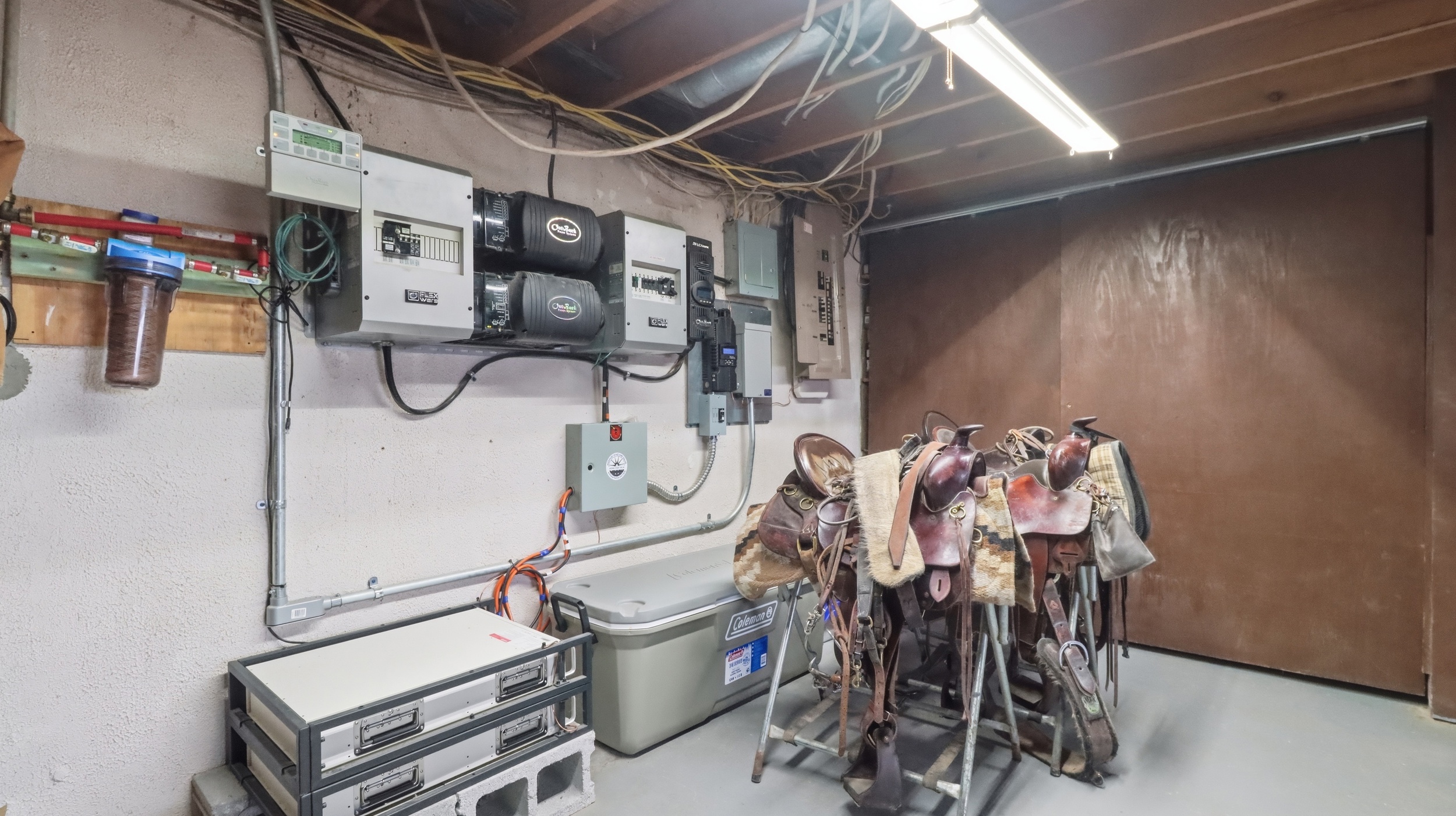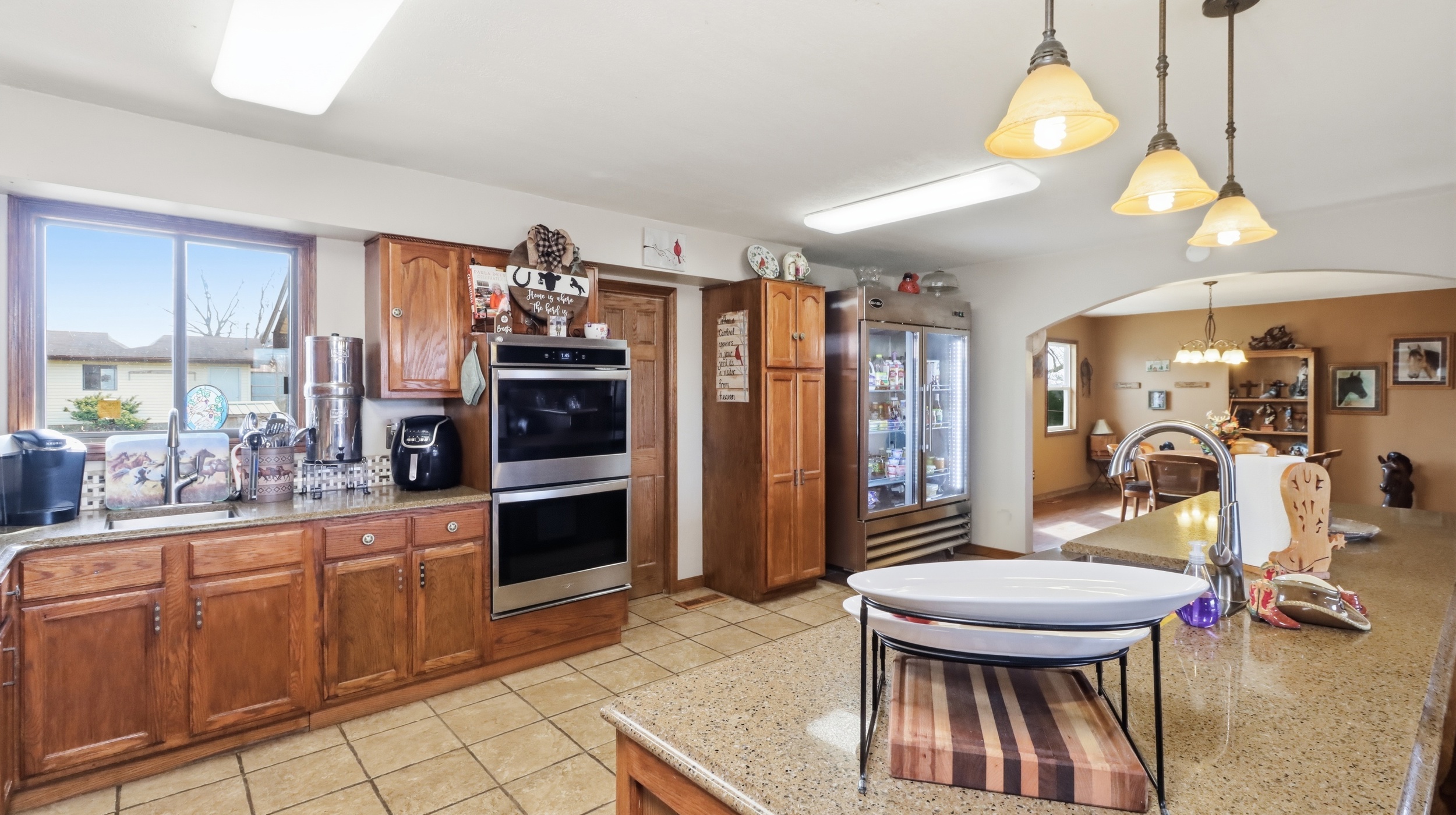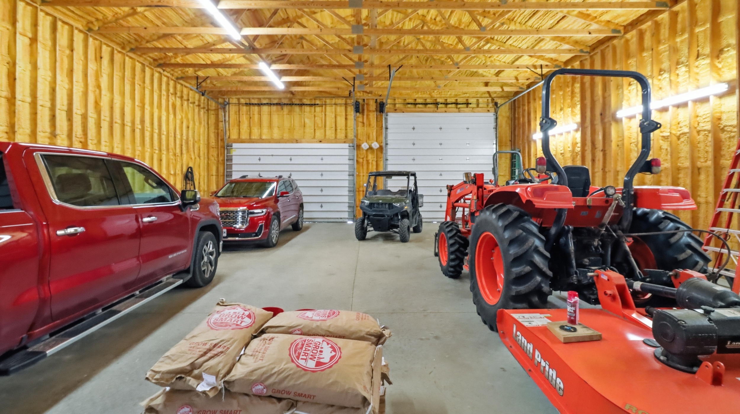 A standout feature is the impressive 40x48 insulated shop/RV storage building with concrete floors, electric, and four drive-through overhead doors (two 14’ and two 10’), plus 50-amp service — perfect for ranch equipment, horse trailers, RVs, or a workshop. A detached garage adds additional storage and functionality.