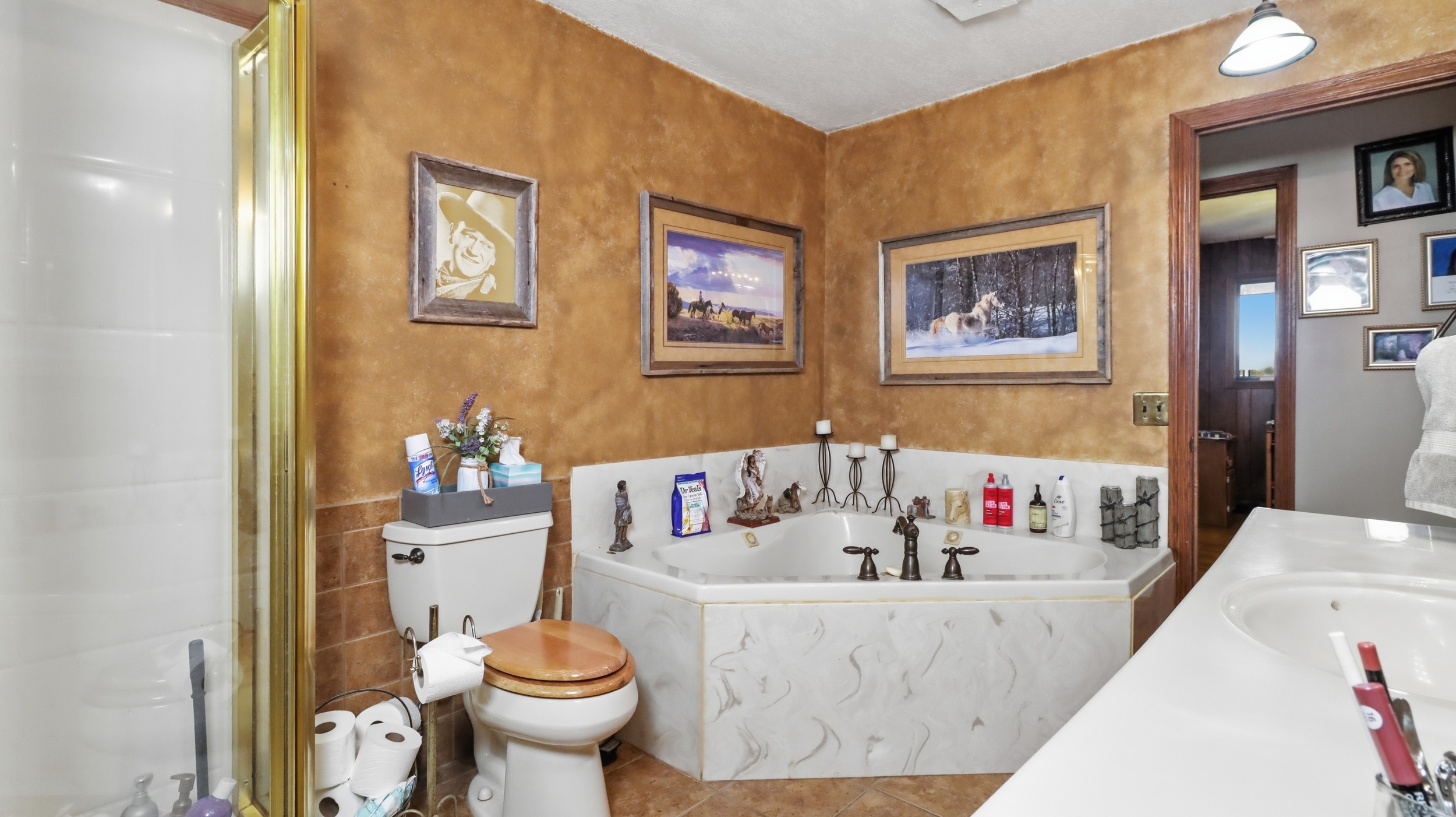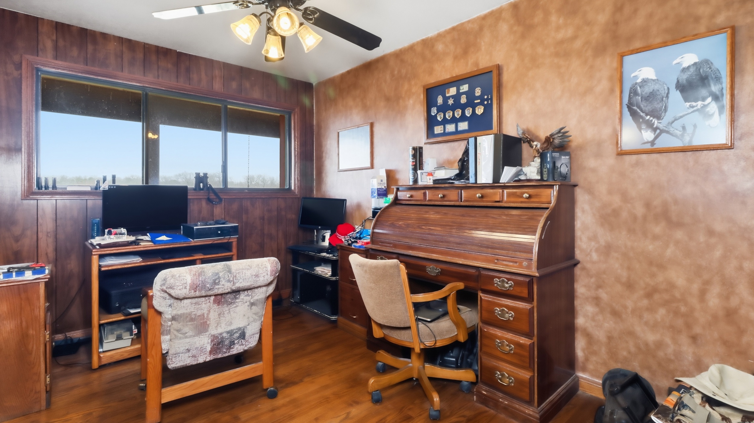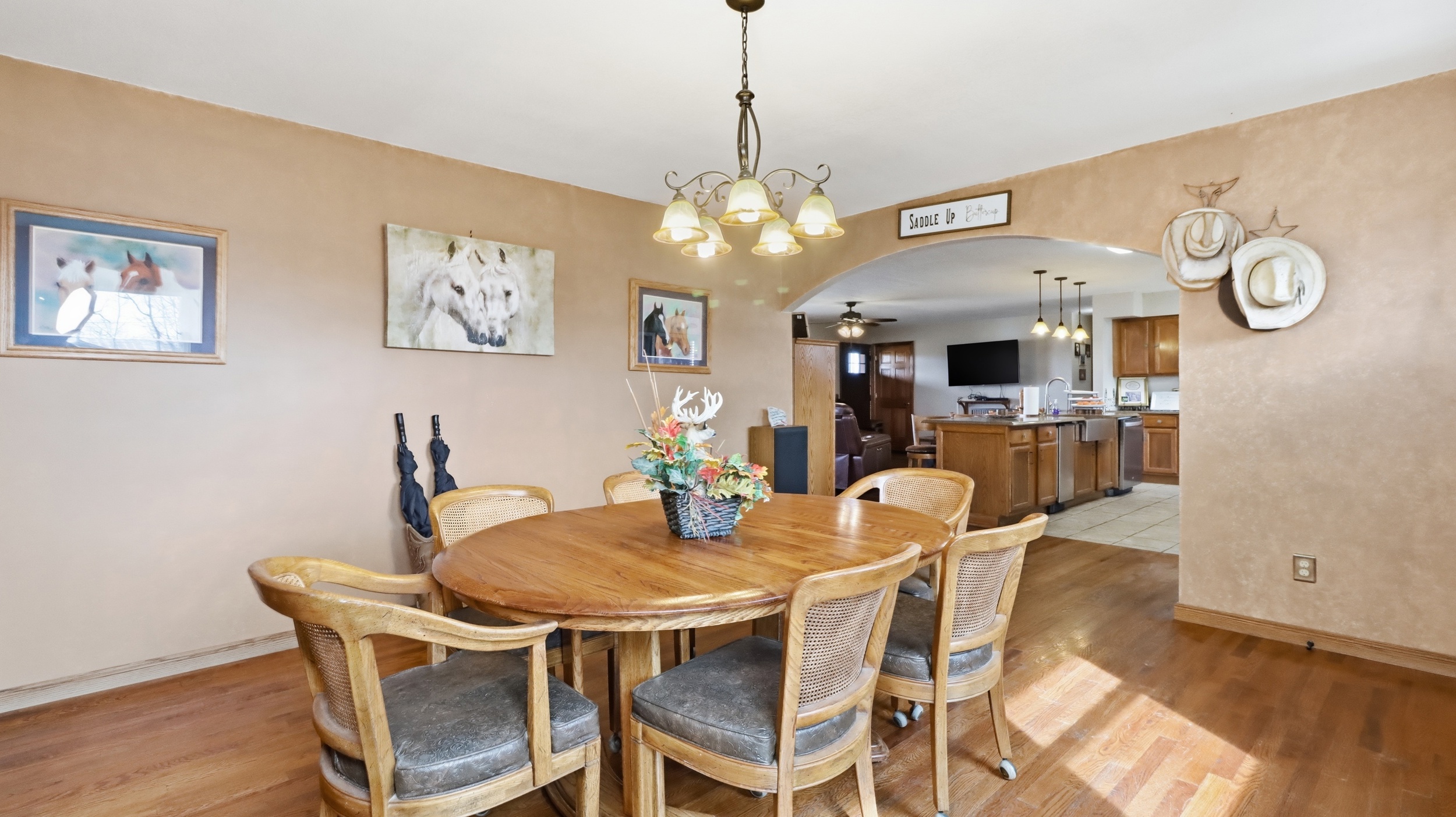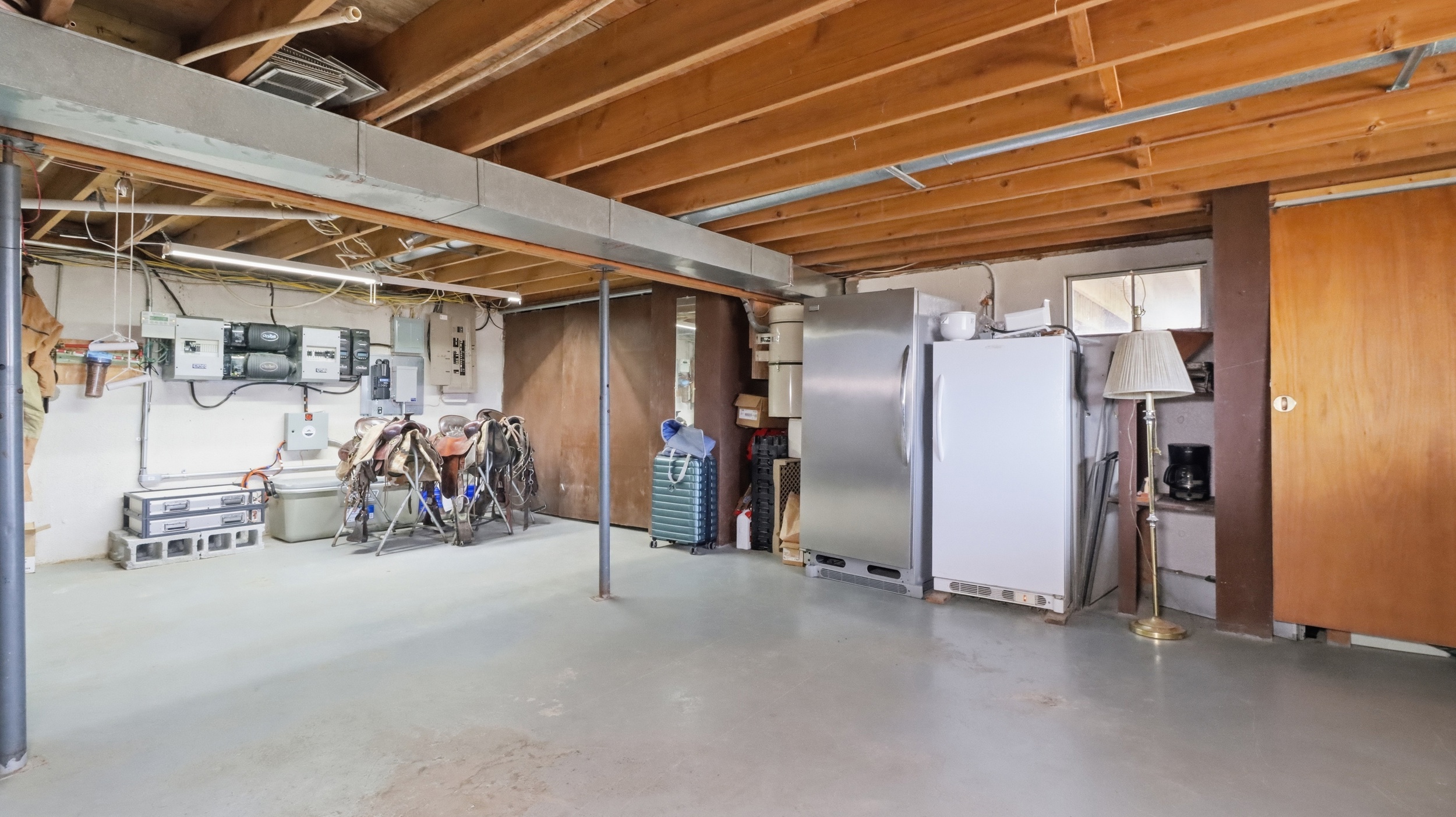 A standout feature is the impressive 40x48 insulated shop/RV storage building with concrete floors, electric, and four drive-through overhead doors (two 14’ and two 10’), plus 50-amp service — perfect for ranch equipment, horse trailers, RVs, or a workshop. A detached garage adds additional storage and functionality.