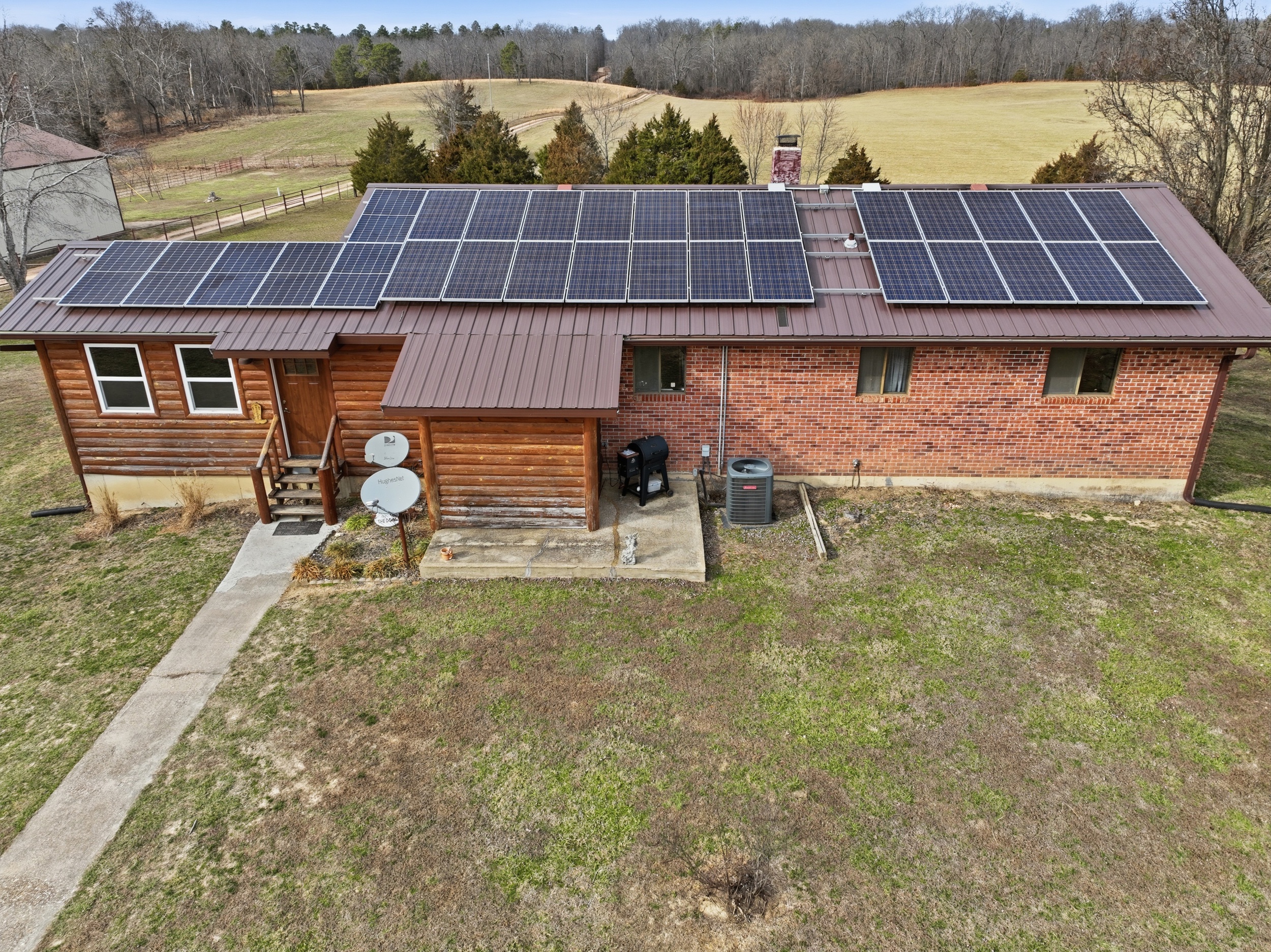 The covered wrap-around deck is the perfect place to relax and enjoy sweeping views of pasture, wildlife, and rolling Ozark hills. Efficiency and resilience were thoughtfully planned with propane heat, wood furnace, backup solar system, and central air, creating a highly energy-efficient country home suited for year-round living or a self-sufficient lifestyle.