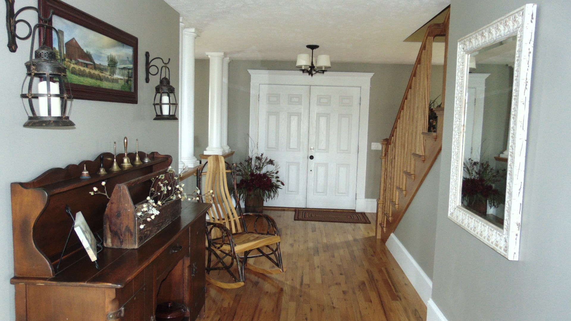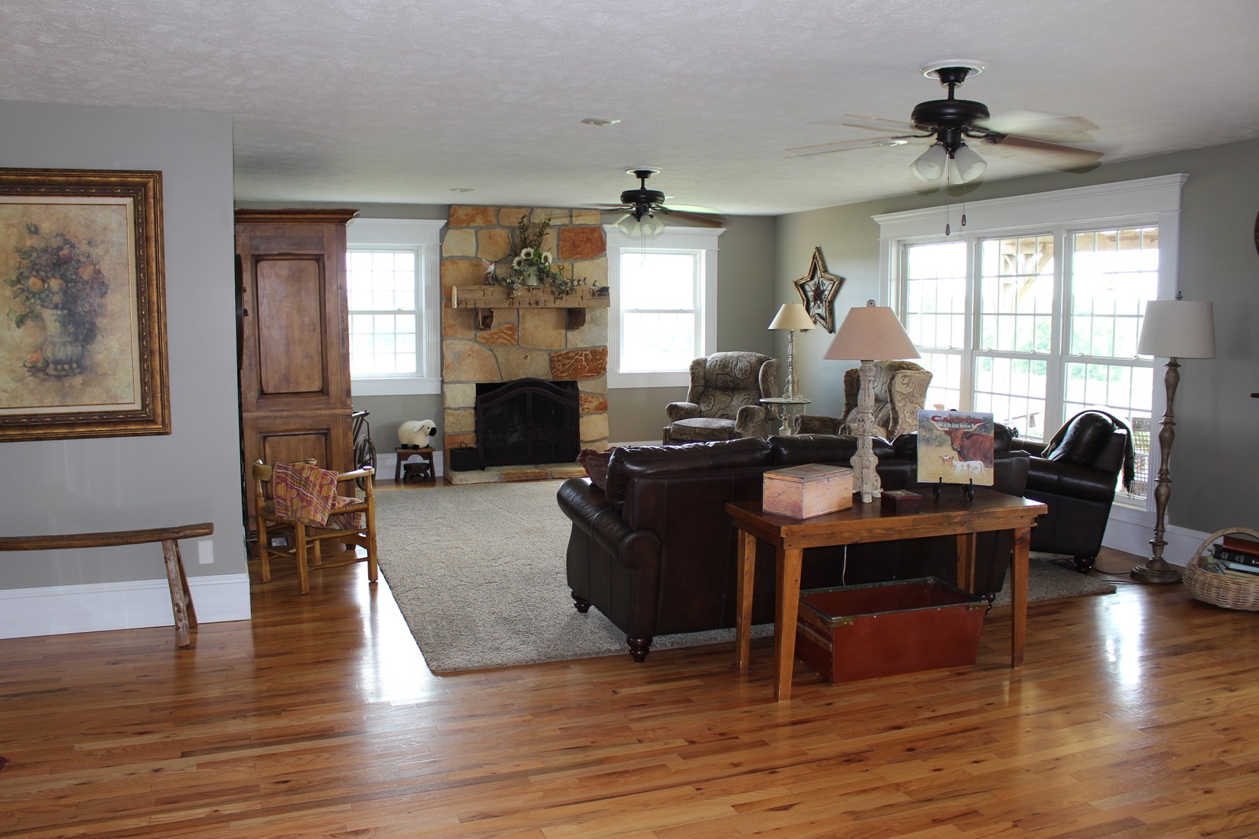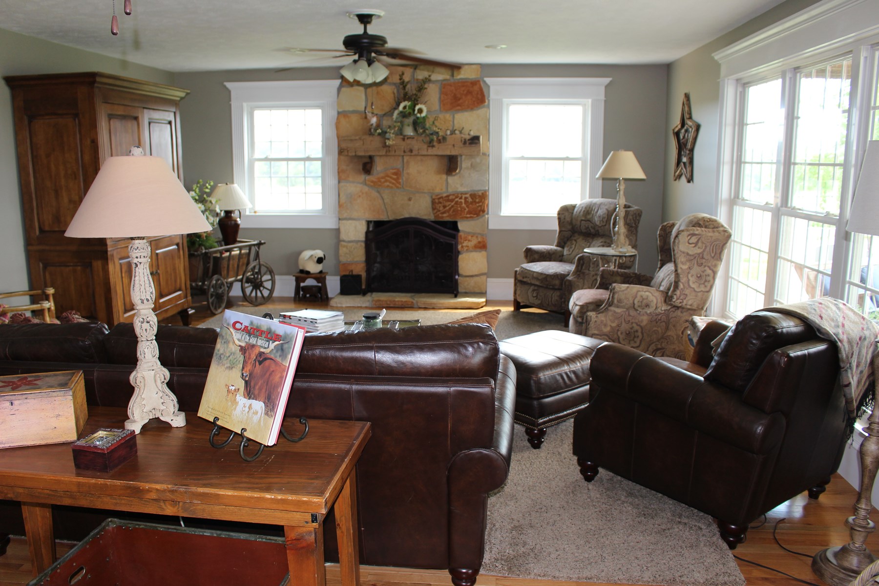 The home is lovely and has flexible living space that could accommodate 2 families! You enter the main level to a wide staircase, living room, and formal dining room that currently has a 14-foot dining table. You walk past the staircase to a family room with a stone, wood-burning fireplace and a large eat-in kitchen with a bar. Granite countertops and commercial grade range compliment the elegant and relaxed space. There is a large pantry off of the kitchen connecting to the breezeway/office, which has a separate entrance and is also off of the garage. French doors from the family room and kitchen lead to a covered porch that spans the back of the home, overlooking the pastures and ponds. The second floor has four bedrooms and three bathrooms, including the laundry and master suite. The lower level can be a separate living space or recreation space with a gase fireplace, bathroom and even a 2-car garage. There are glass doors that give the space a light and airy feel.