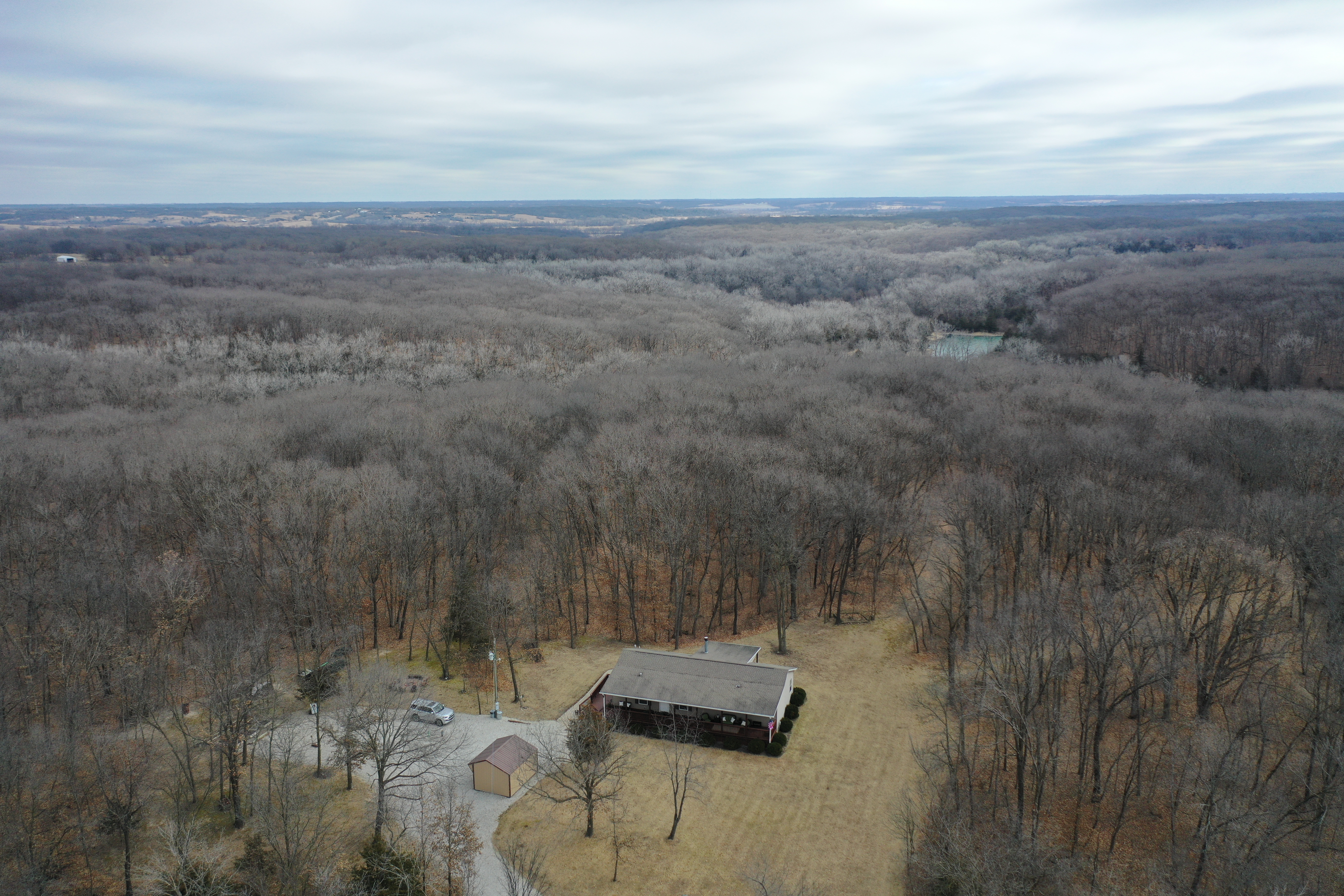 The country home on the property features three cozy bedrooms and two full bathrooms, providing ample space for family and guests. The layout is designed for comfort and practicality, allowing you to unwind after a day spent exploring the vast acreage. It's a welcoming space that blends rustic charm with everyday convenience, making it an ideal setting for country living.
