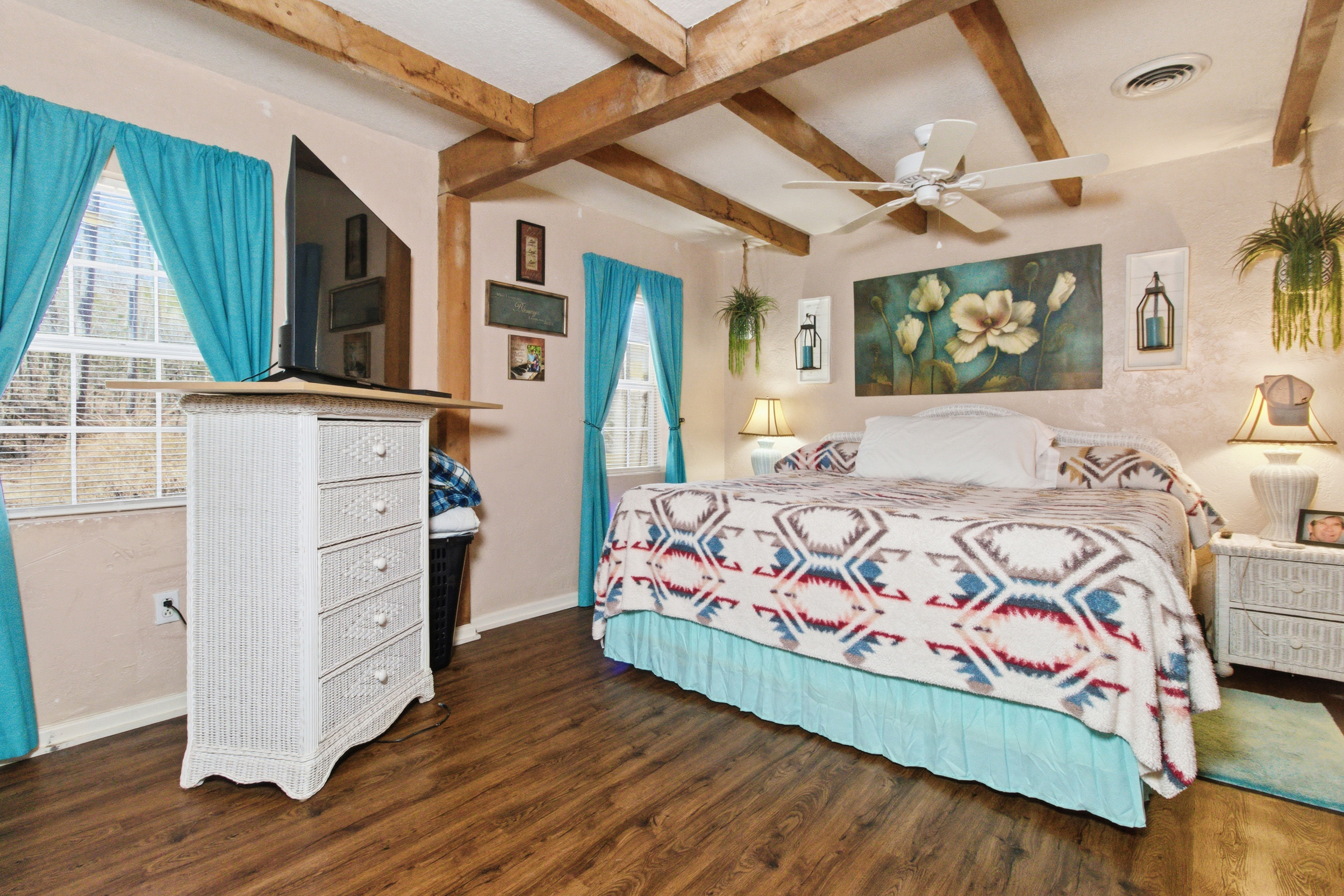 This property has seen extensive recent upgrades, including a new metal roof, new HVAC system and ductwork, new heat pump, new flooring, upgraded bathrooms, and an improved well system, allowing buyers to enjoy peace of mind while still appreciating the home’s rustic character.