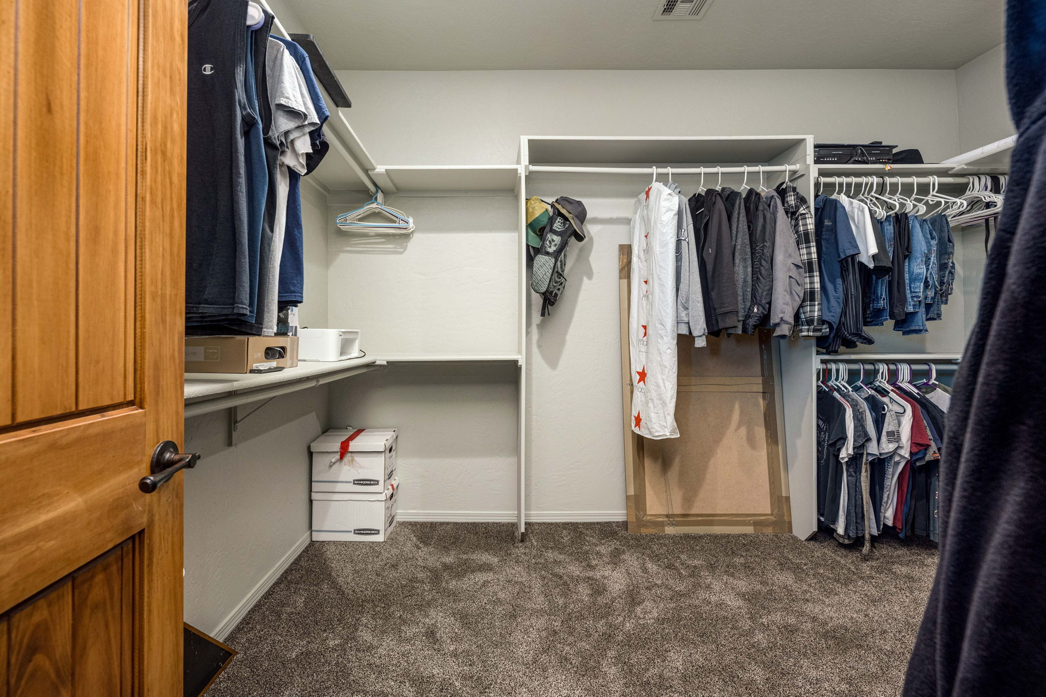 The home offers two spacious primary suites along with a convenient half bath, providing comfort and flexibility for guests or multigenerational living. The main primary retreat features an expansive walk-in closet and elegant tray ceilings accented with cove lighting. Additional highlights include 2x6 construction, spray foam insulation, an owned water softener, and a four-car epoxy-finished garage with built-in storage.