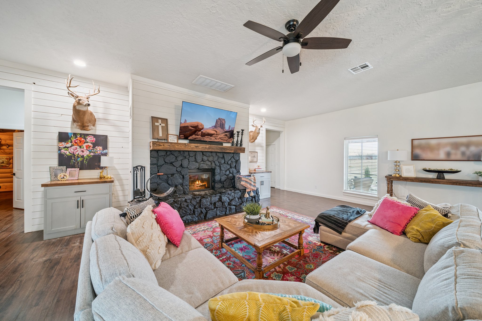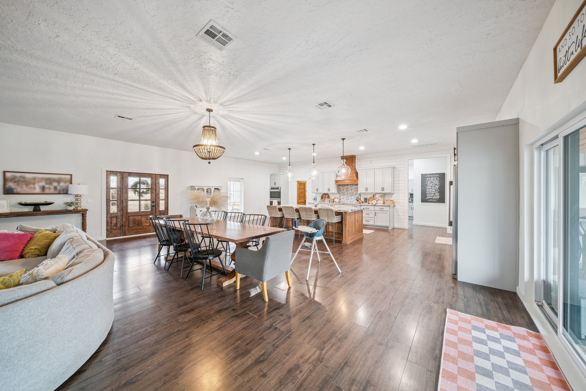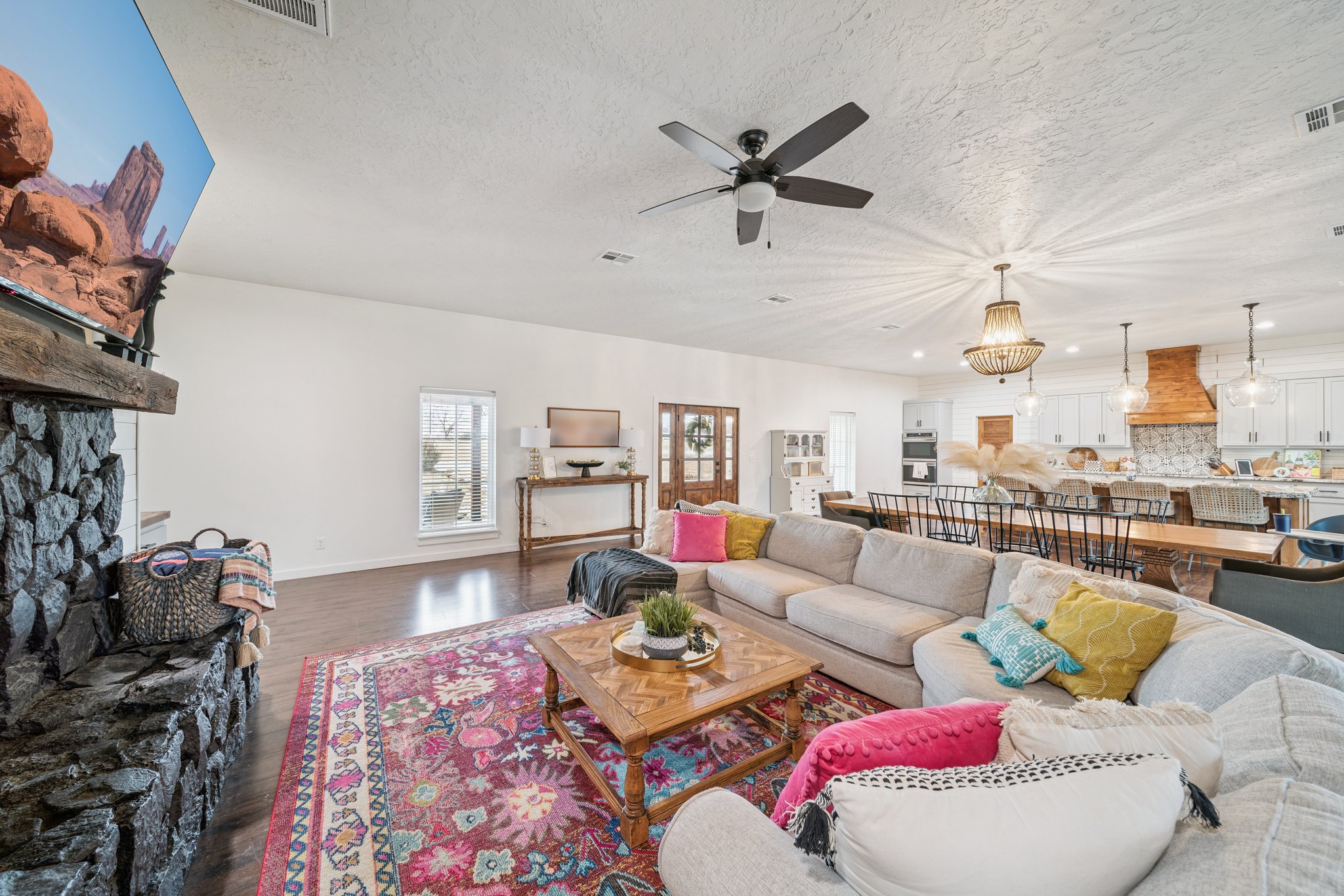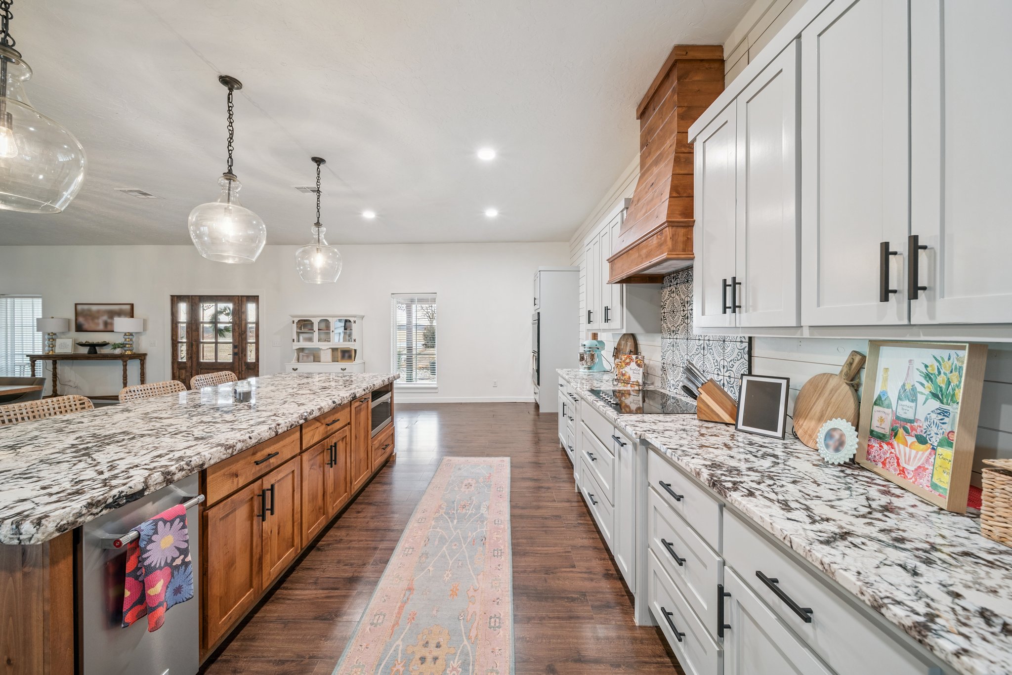 Welcome to this beautiful 3-bedroom, 2.5-bath modern farmhouse offering 3,850 sq ft of thoughtfully designed living space on 6.5 scenic acres in Pryor, Oklahoma. This open-concept home features a spacious living area with a cozy fireplace and a large entertainer’s island, perfect for gatherings and everyday living. The kitchen is a dream with a custom pantry and ample counter space, ideal for hosting and family meals. The primary suite is truly impressive, boasting a large bedroom, luxury bathroom, and an oversized high-end walk-in closet designed for comfort and style. The two guest bedrooms are connected by a Jack-and-Jill bathroom, providing convenient and functional layout. The home includes a safe room in garage and a versatile flex room suitable for a home office, gym, playroom, or additional living space. Enjoy energy efficiency with solar panels to help lower utility bills. Outside, the property shines with a 30x45 shop, chicken coop, garden area, and a custom rock firepit—perfect for relaxing evenings under the stars. A fenced area for animals adds functionality, while the beautiful panoramic views provide a peaceful country setting. This property offers the perfect blend of modern comfort and rural charm — space to live, entertain, and enjoy the outdoors. Call today and let's go take a look.