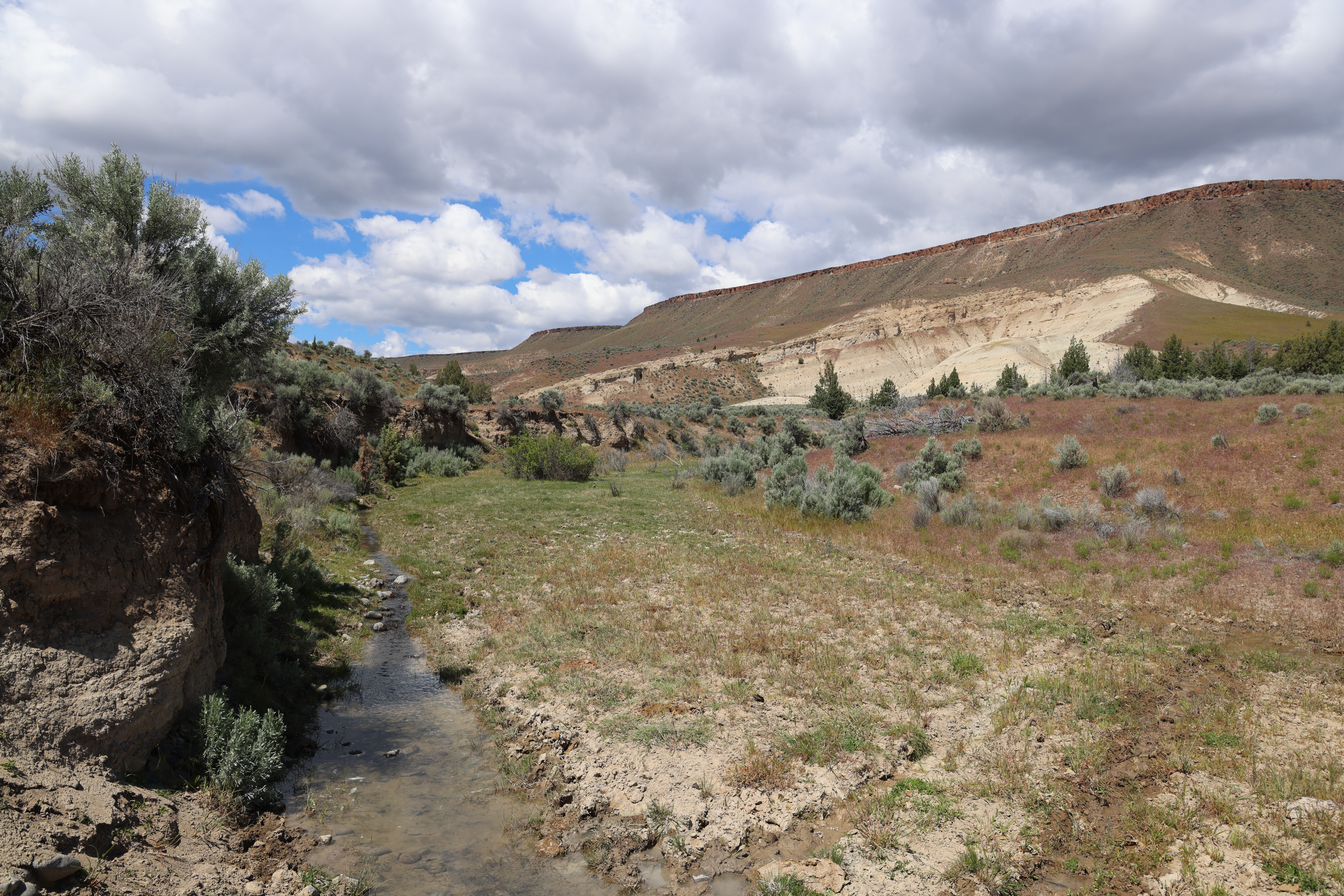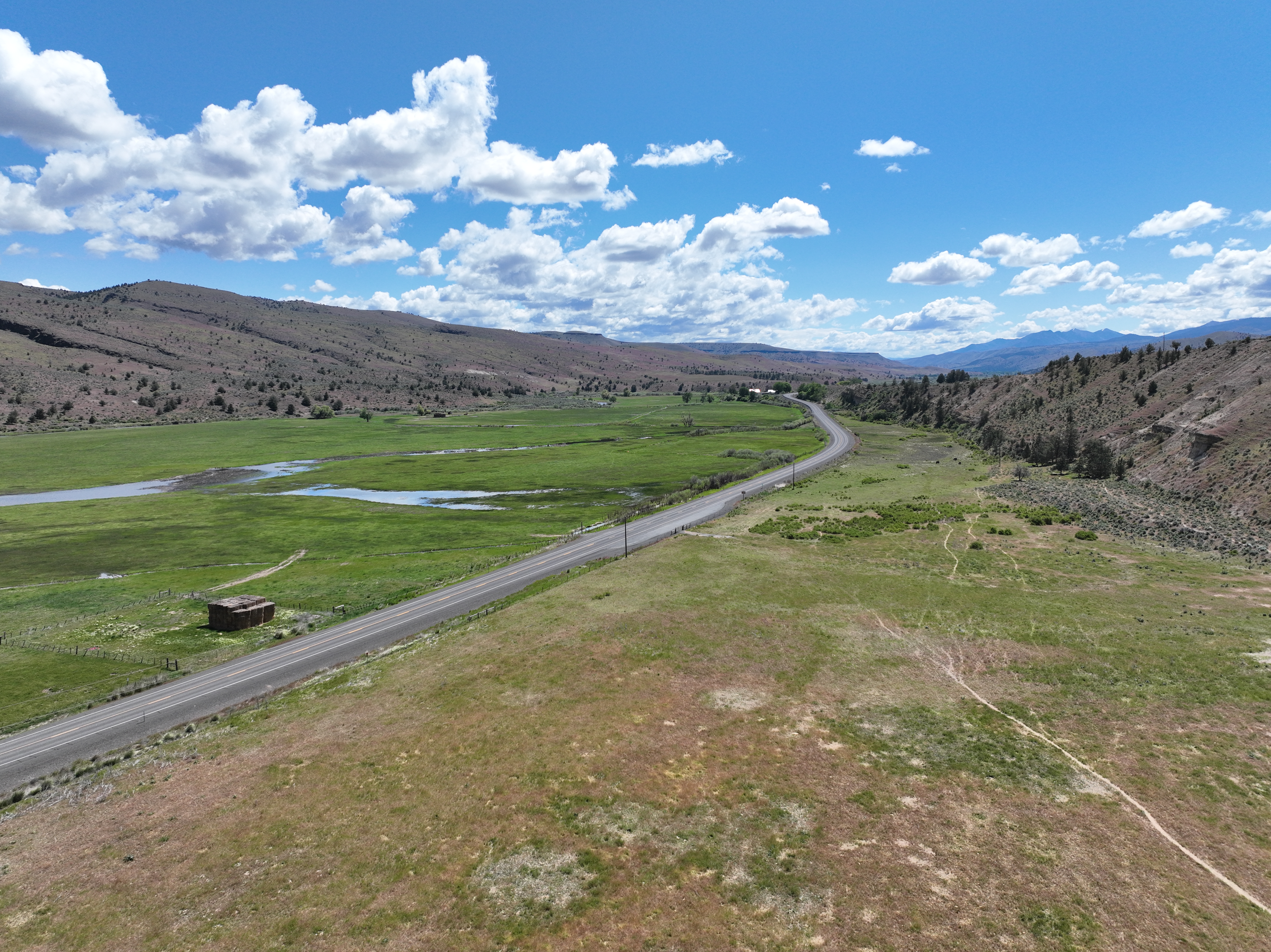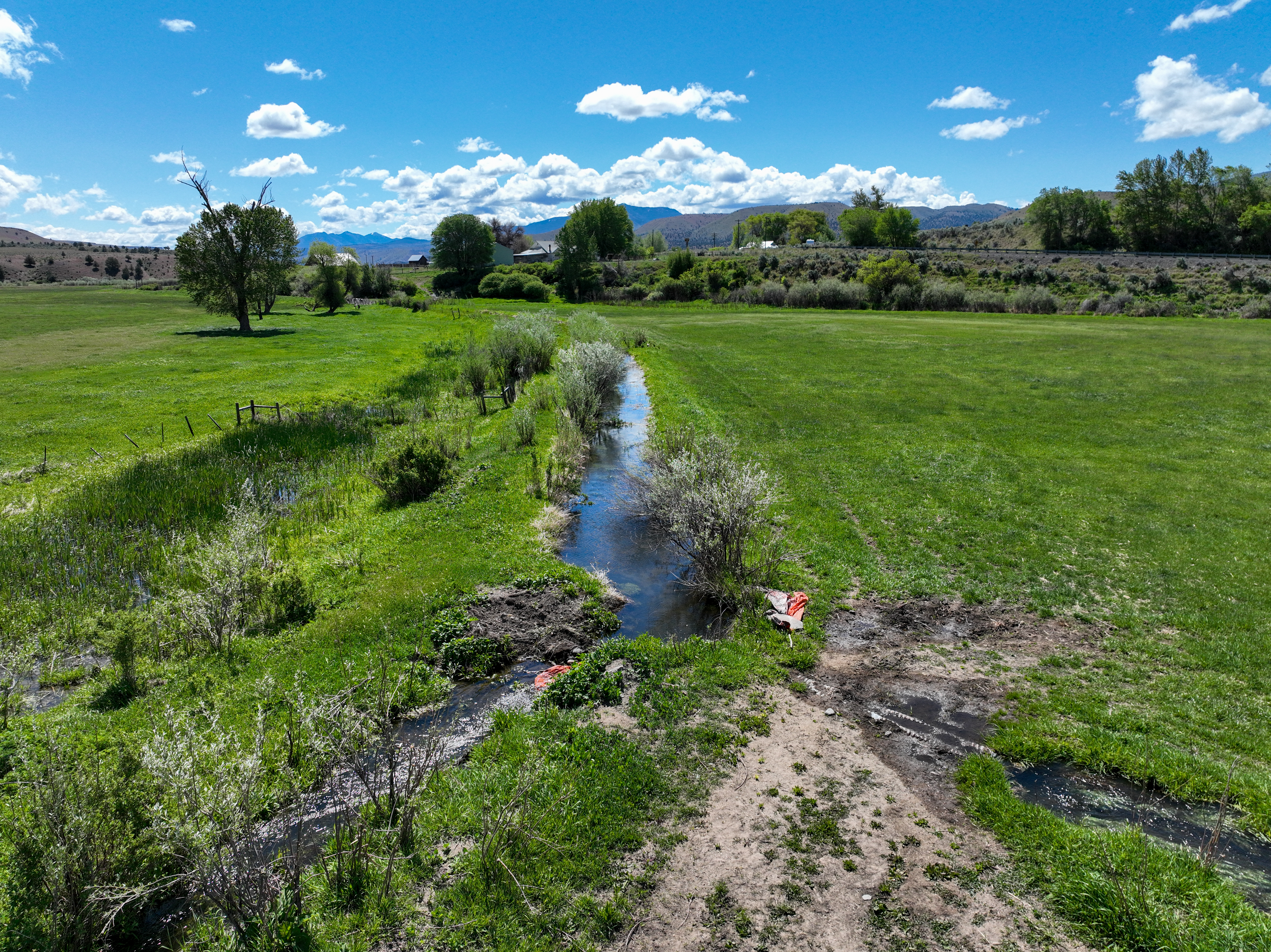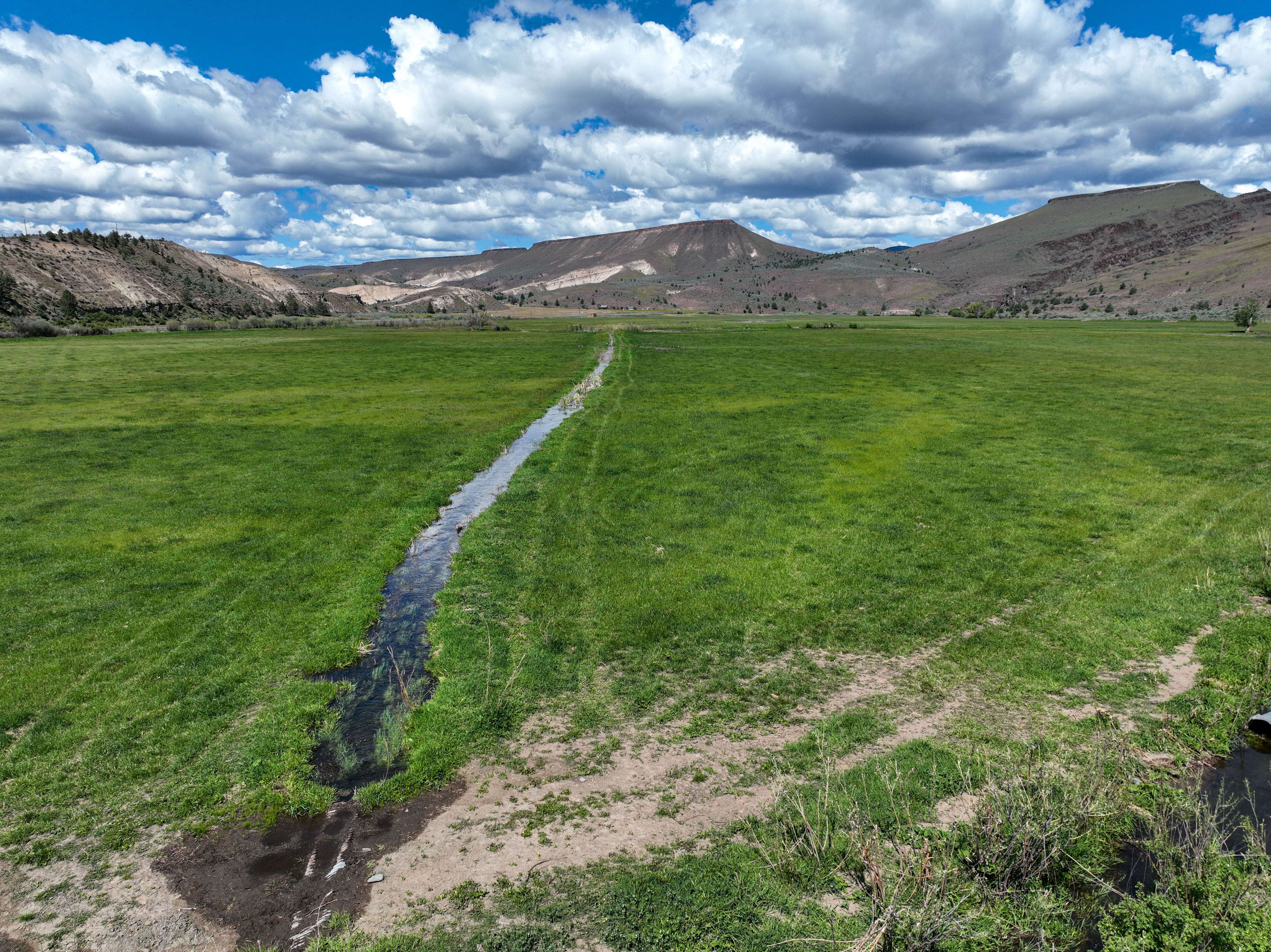 The ranch features an impressive variety of terrain, with dramatic elevation changes ranging from 2,240 to 4,680 feet. Water is found throughout portions of the ranch, with natural springs and creeks weaving through the land before feeding into the John Day River, which flows for approximately 1.75 miles across the property. Notable water sources include Day Creek, Little Rattlesnake Creek, and Rattlesnake Creek, which serve as primary tributaries. Irrigation is sourced from both the John Day River and Cottonwood Creek, supporting approximately 260.8 acres of water rights.