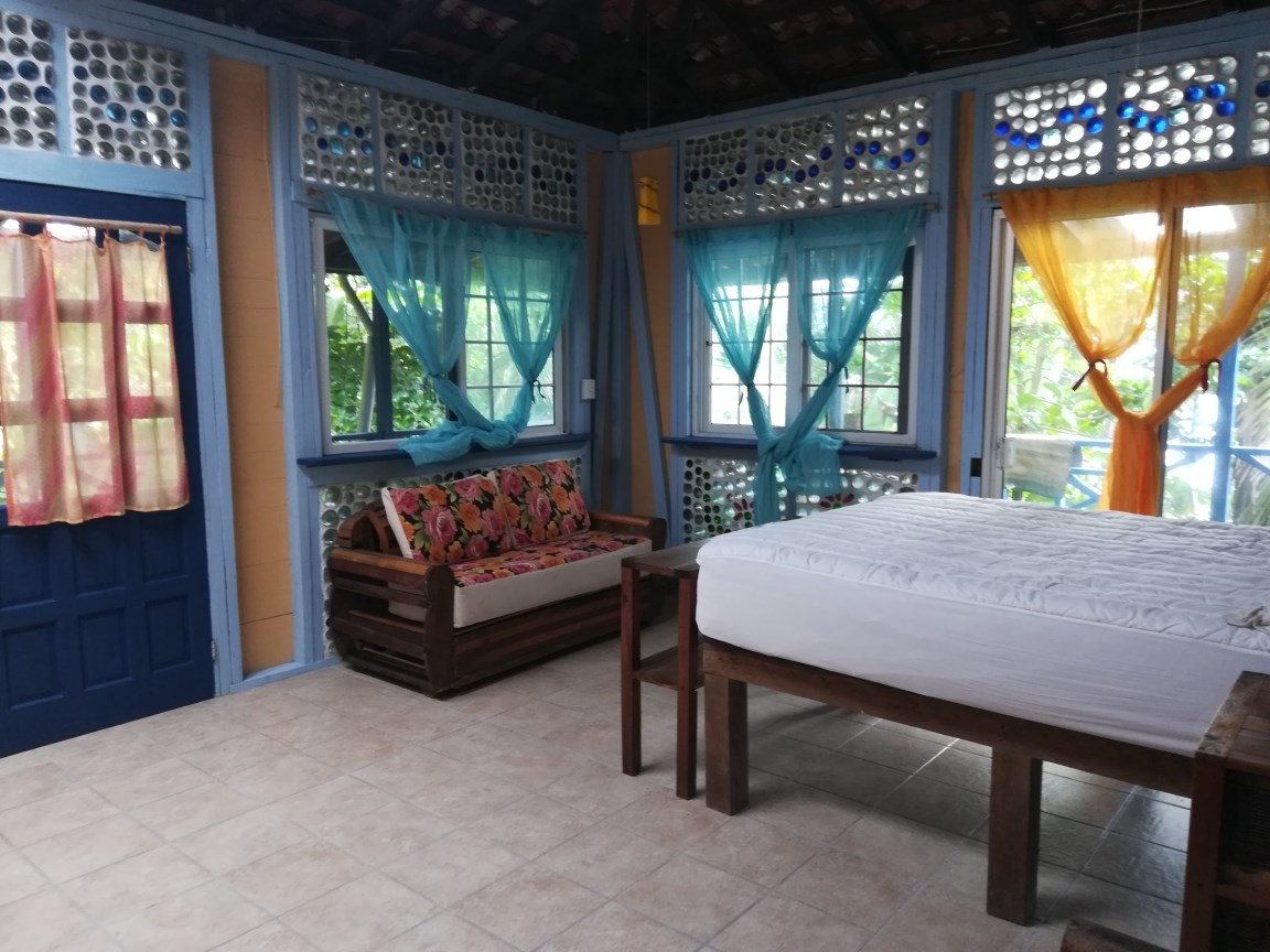This well-established coastal Bocas del Toro surf lodge has titled beachfront on Isla Colon. That means you can drive to it. It is located on a hillside facing the ocean in the popular Bluff beach area. The main lodge has 7 rental rooms, staff rooms, and manager rooms plus a kitchen/restaurant area, and multiple terraces wrapping around the closed-in areas. It also includes 3 ocean-facing casitas and a garage or bodega as we call them here. The quaint paths lead to and from each place. All this is on a lot size just under 3000 meters with plenty of oceanfront and a narrow beach below. They stay very full during the high season and even have a decent occupancy in the low season due to the modest prices, great location for surfers, and cool vibes.