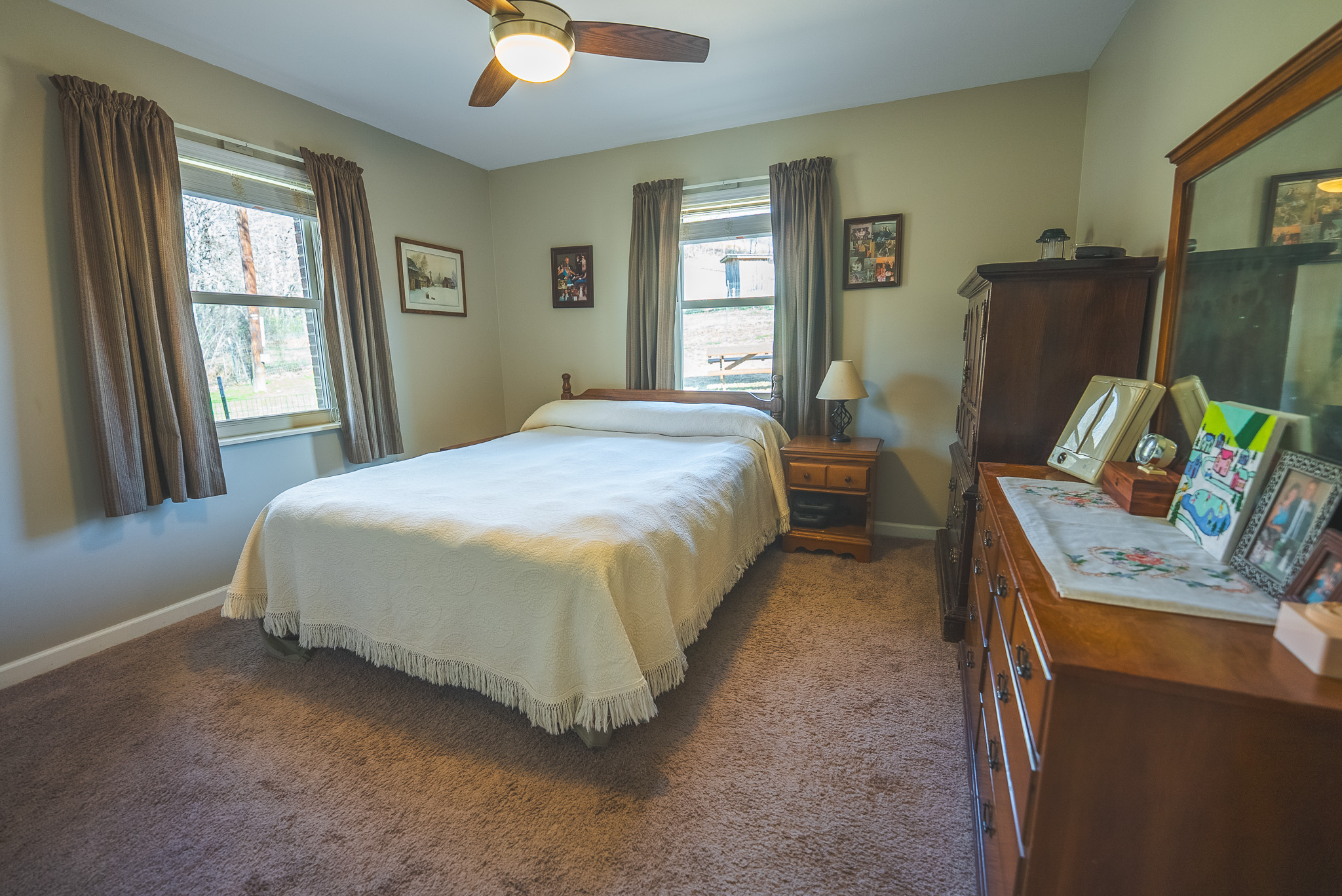 The brick ranch home is as neat as they come—a spotless, non-smoking household that has been cared for with pride. Inside, you’ll find 3 bedrooms and a large, updated country kitchen designed for everyday living and family gatherings. Quartz countertops, plenty of cabinets, and modern conveniences—including a dishwasher and microwave—make it easy to run a busy home or host guests. The living room features crown molding, hardwood floors, and a Vermont Castings wood stove, giving the space a warm, classic East Tennessee feel. Vinyl windows with blinds, ceiling fans, laundry hookups, and a large bathroom round out the comfort on the main level.