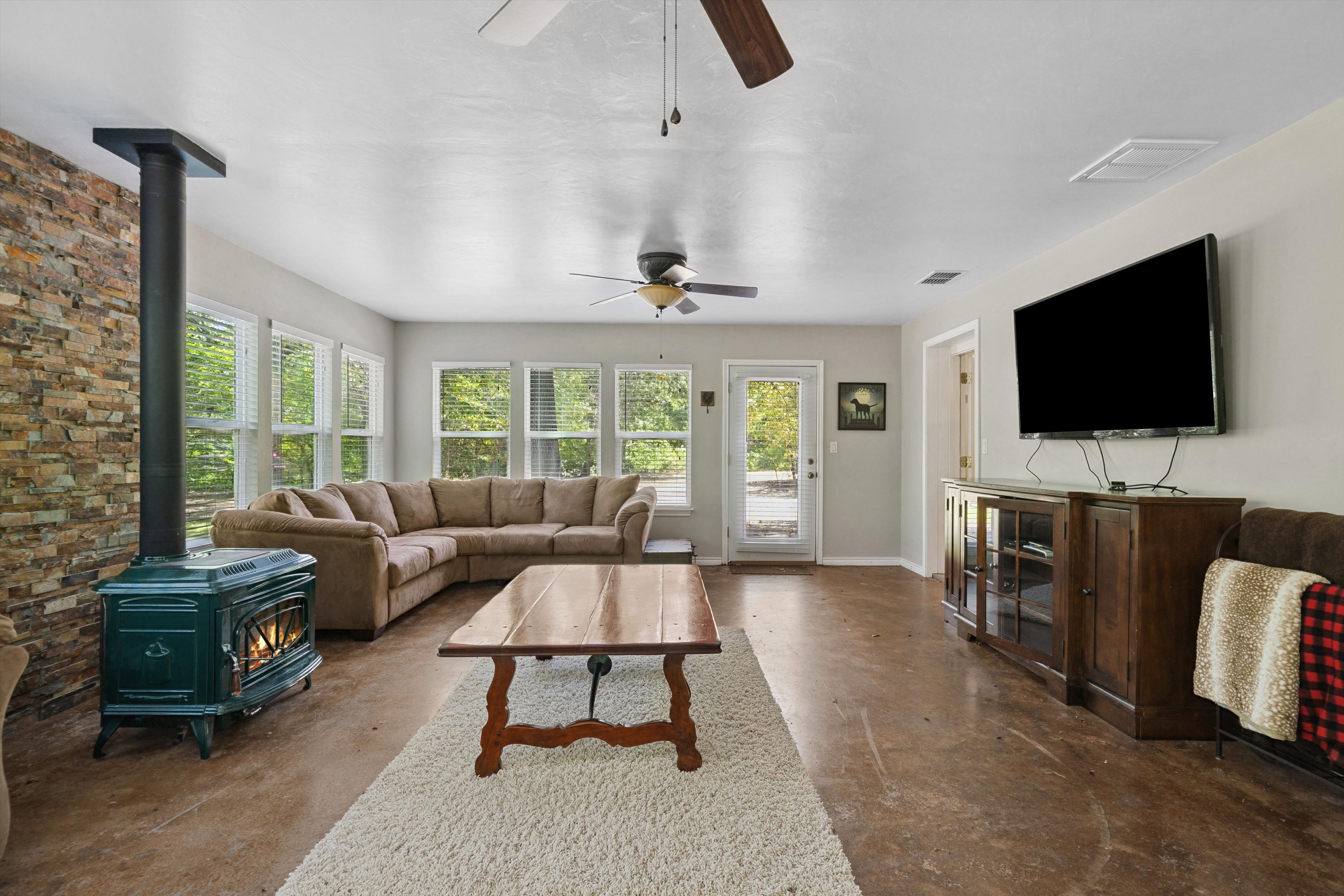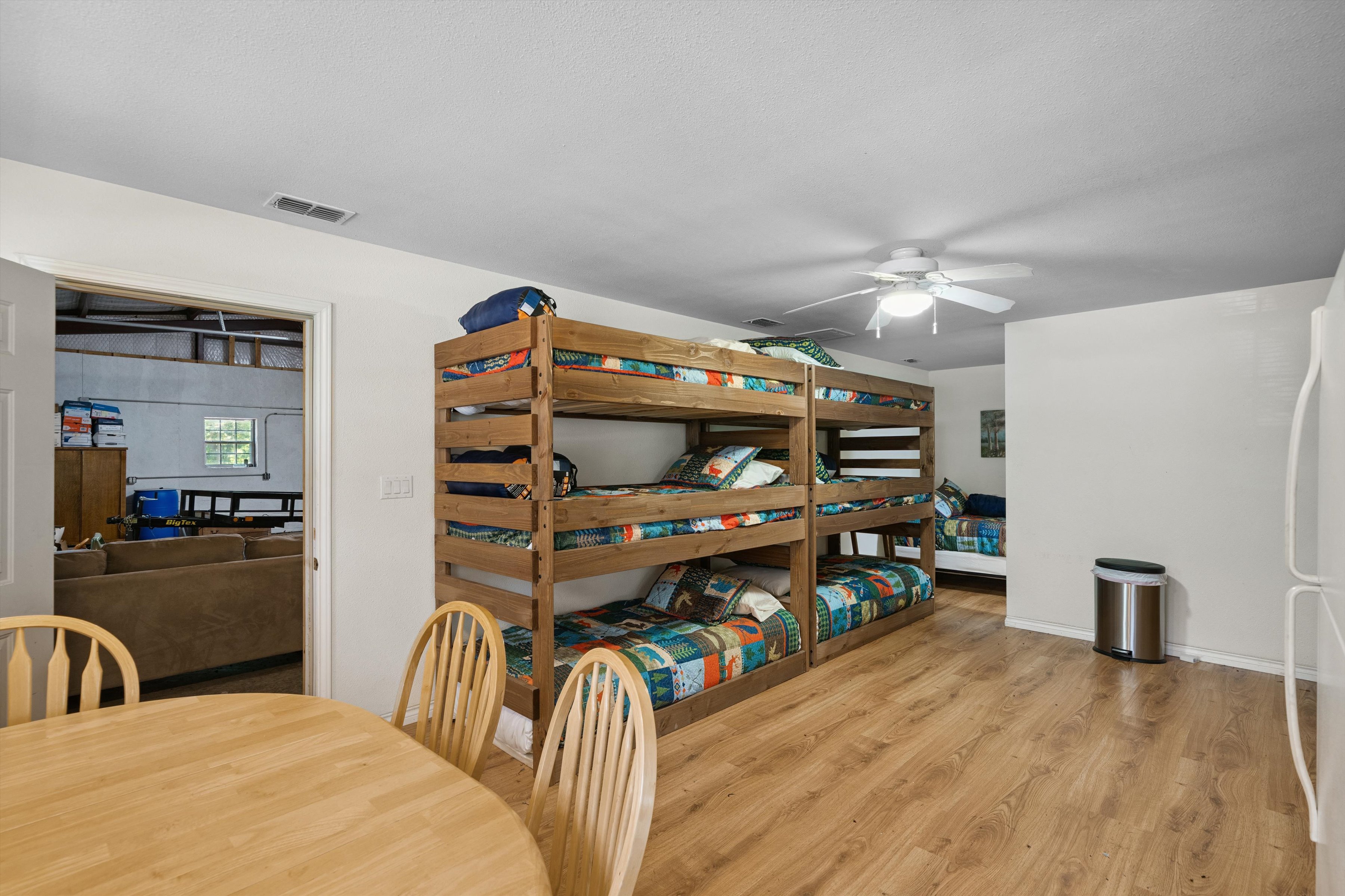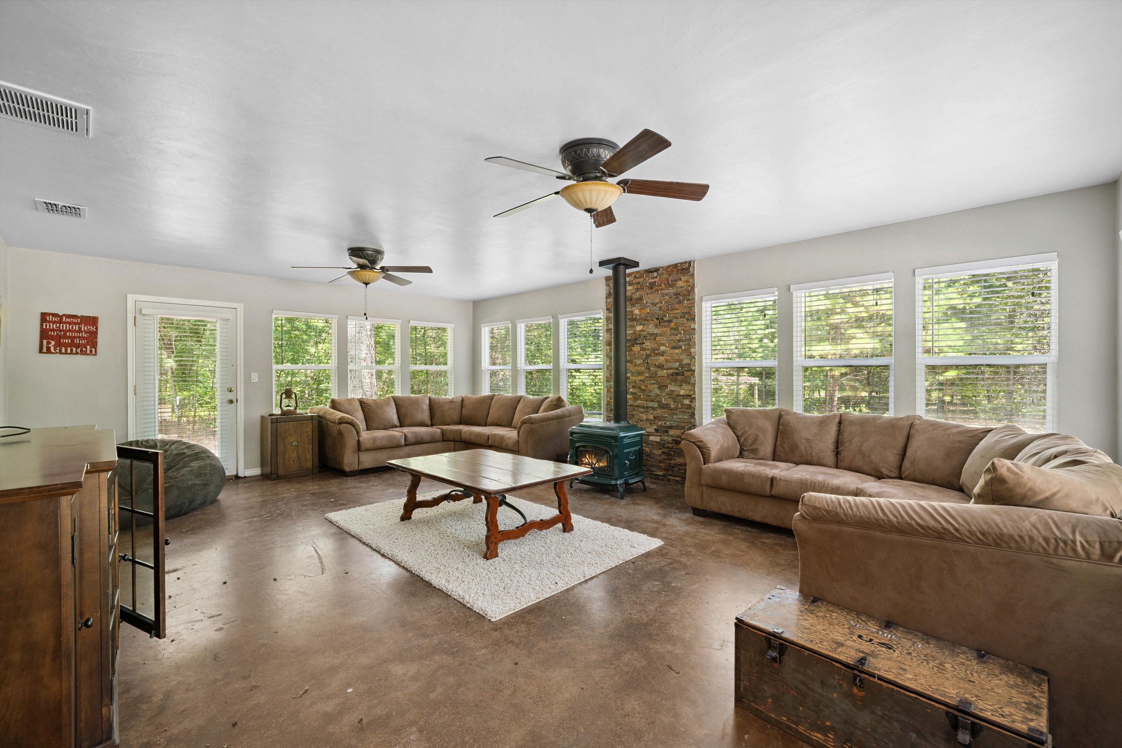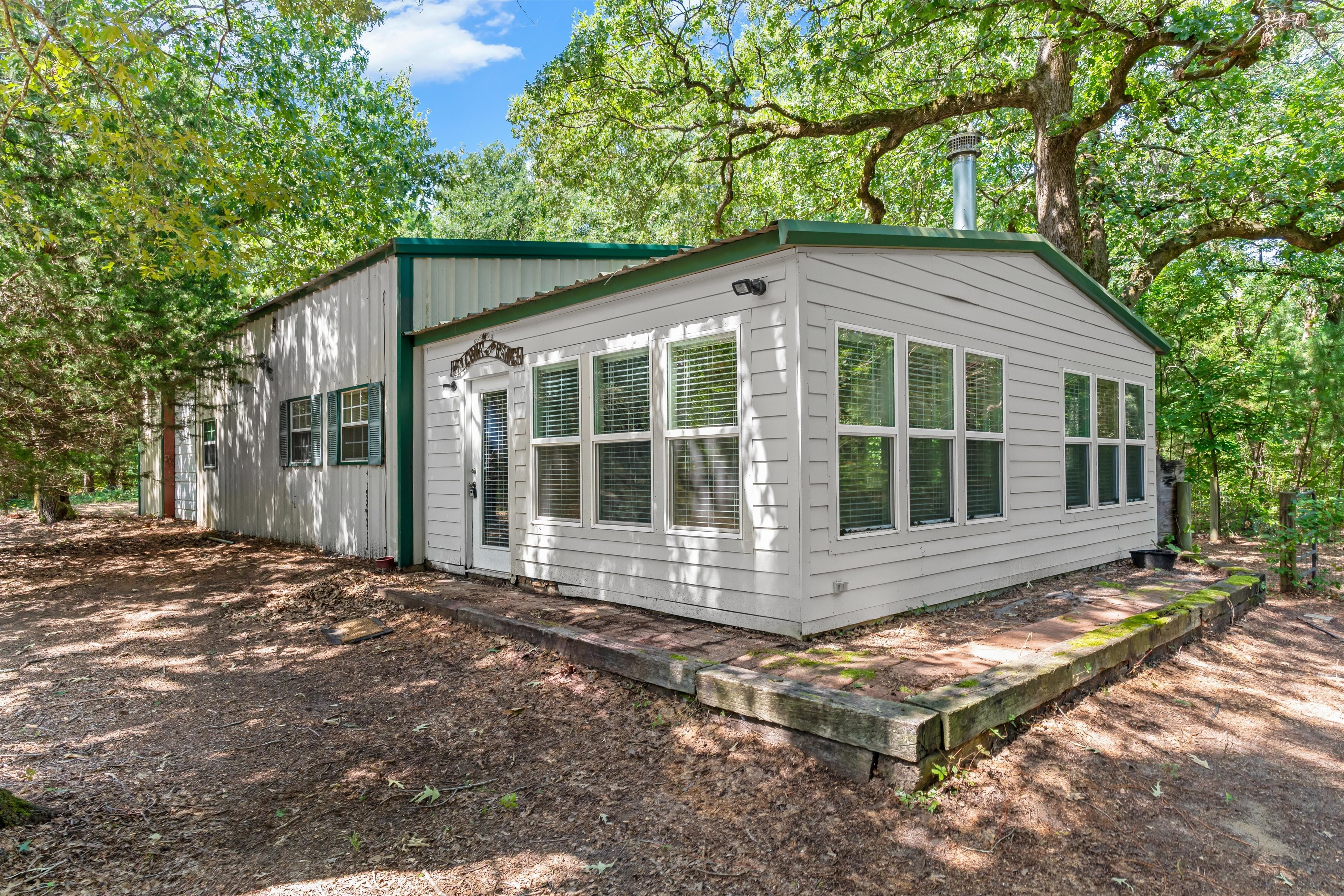 Private Paradise in Quitman, Texas - Wood County! 50 unrestricted wooded acres with dramatic topography, a pond, seasonal creek, gated entrance & abundant wildlife! 3BD/2BA home built in 2012 is secluded from the road; brick & Hardie plank exterior, 2x6 construction & a metal roof. Full length covered front porch, screened porch & open deck to enjoy the outdoors. Spacious eat-in kitchen has granite counter tops + an abundance of cabinets & counter space, & adjoins the oversized utility room & pantry. 3' doorways throughout with laminate & porcelain tile flooring, and there's a safe room! Big insulated workshop with 110 & 220 and HVAC is attached to 800 sf guest house/bunk house that has huge living area, bedroom, kitchen & bath. Property is perimeter fenced with approximately 9 acres fenced around the house. Main house is on a private well & guest house is on co-op water. Timber exemption on land for low taxes. Great location with several large ranches in the area. Only 10 minutes to hospital, schools & shopping. Most furniture conveys.