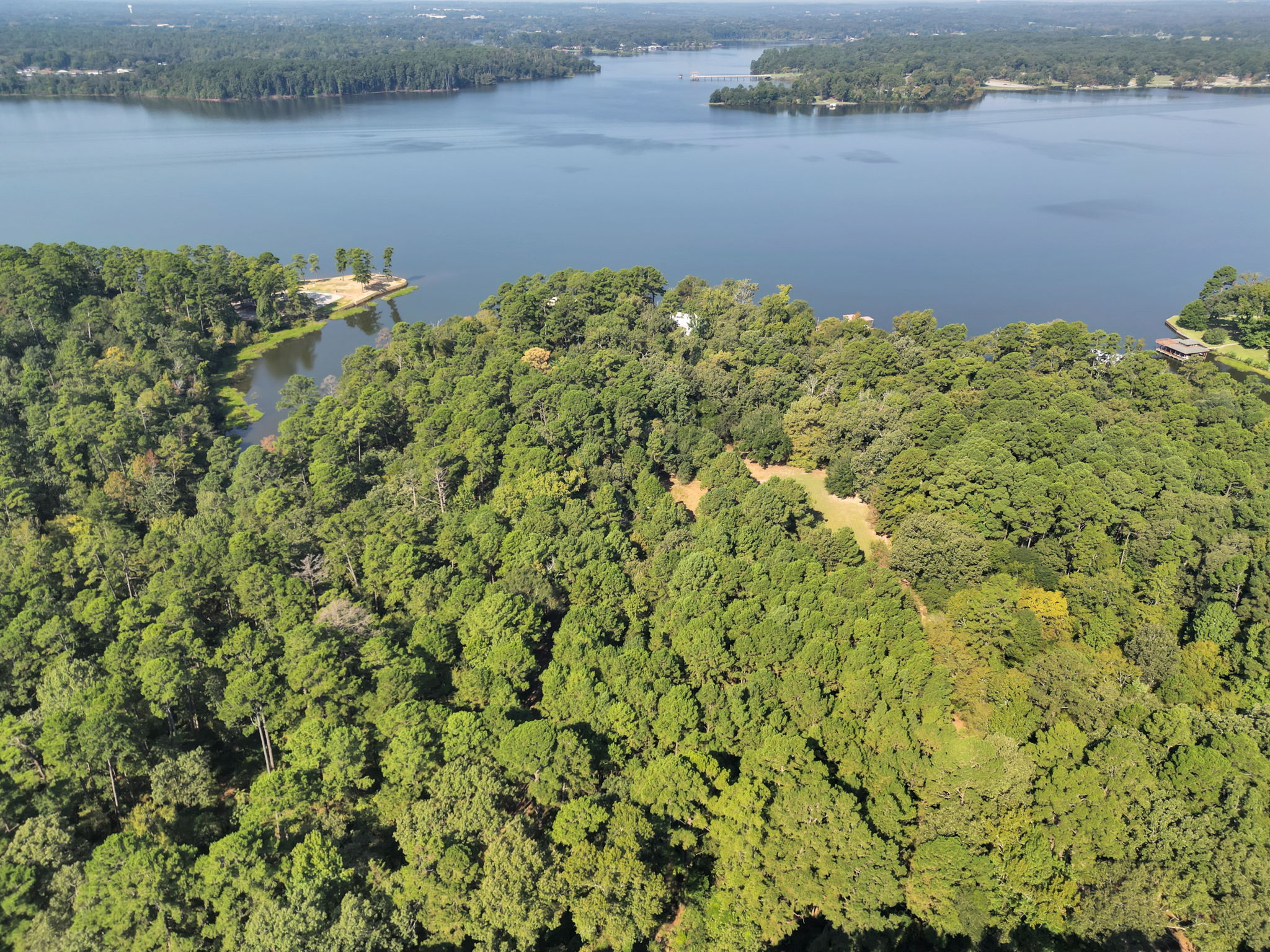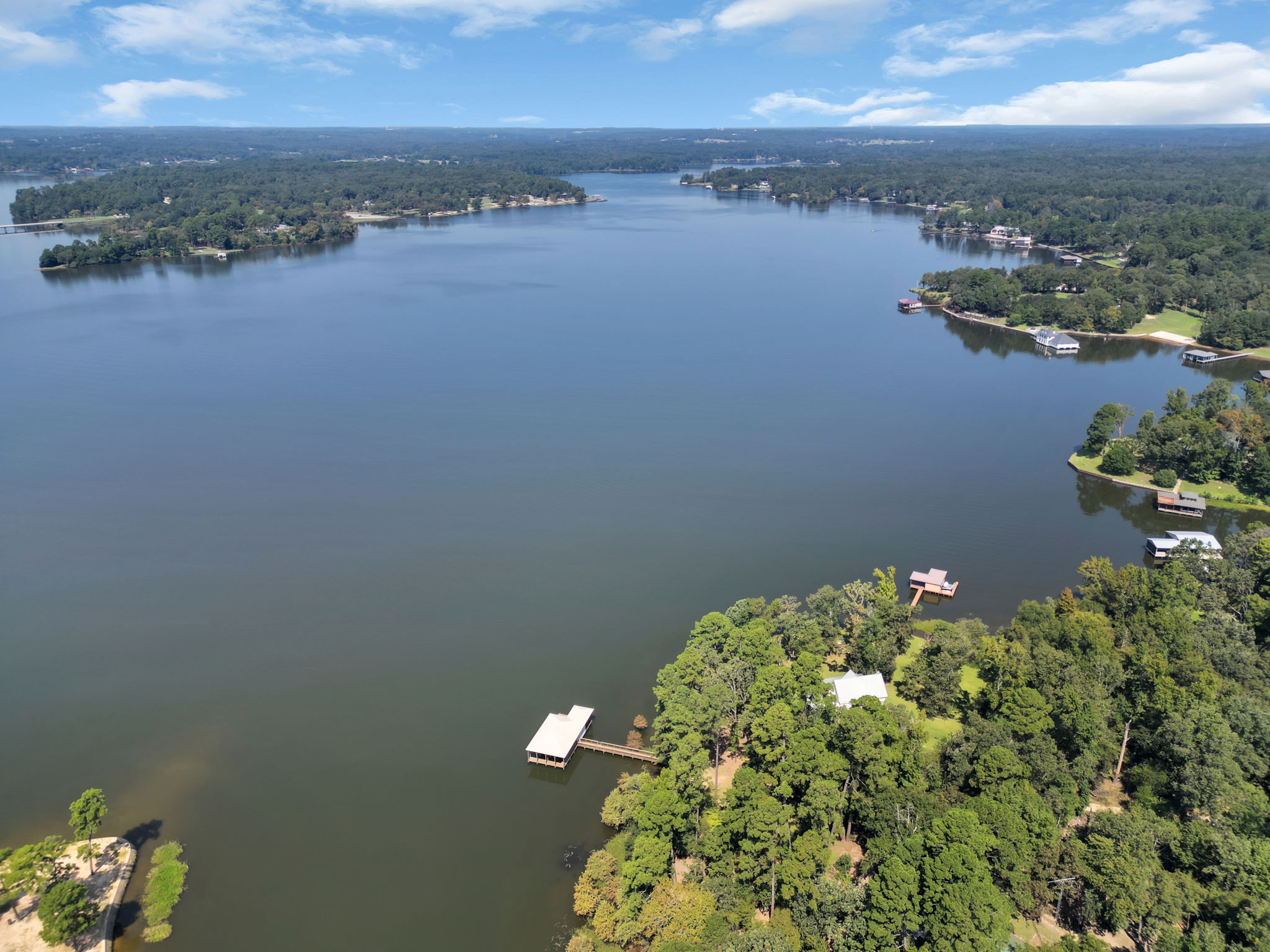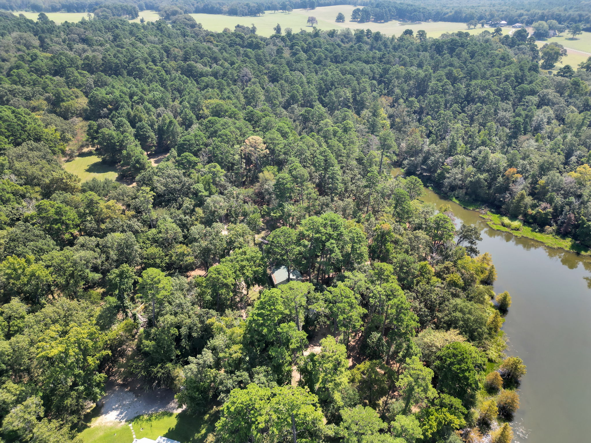 Approximately 222 linear feet of prime shoreline wraps the property's south-southwest-facing waterfront, framing wide open water and sunset views that stretch across the main body of the lake. Mature loblolly pine, hardwood oak, flowering dogwood, and stately bald cypress provide a natural canopy of shade and privacy that transforms the grounds into a retreat from the moment you arrive. The gentle, park-like topography makes this parcel equally suited for keeping the current barndominium as a functional lake camp or developing the site into a custom waterfront estate. A shared gravel drive provides access to the property, and with no deed restrictions on this parcel, you have full flexibility to build, improve, and use the land on your terms.