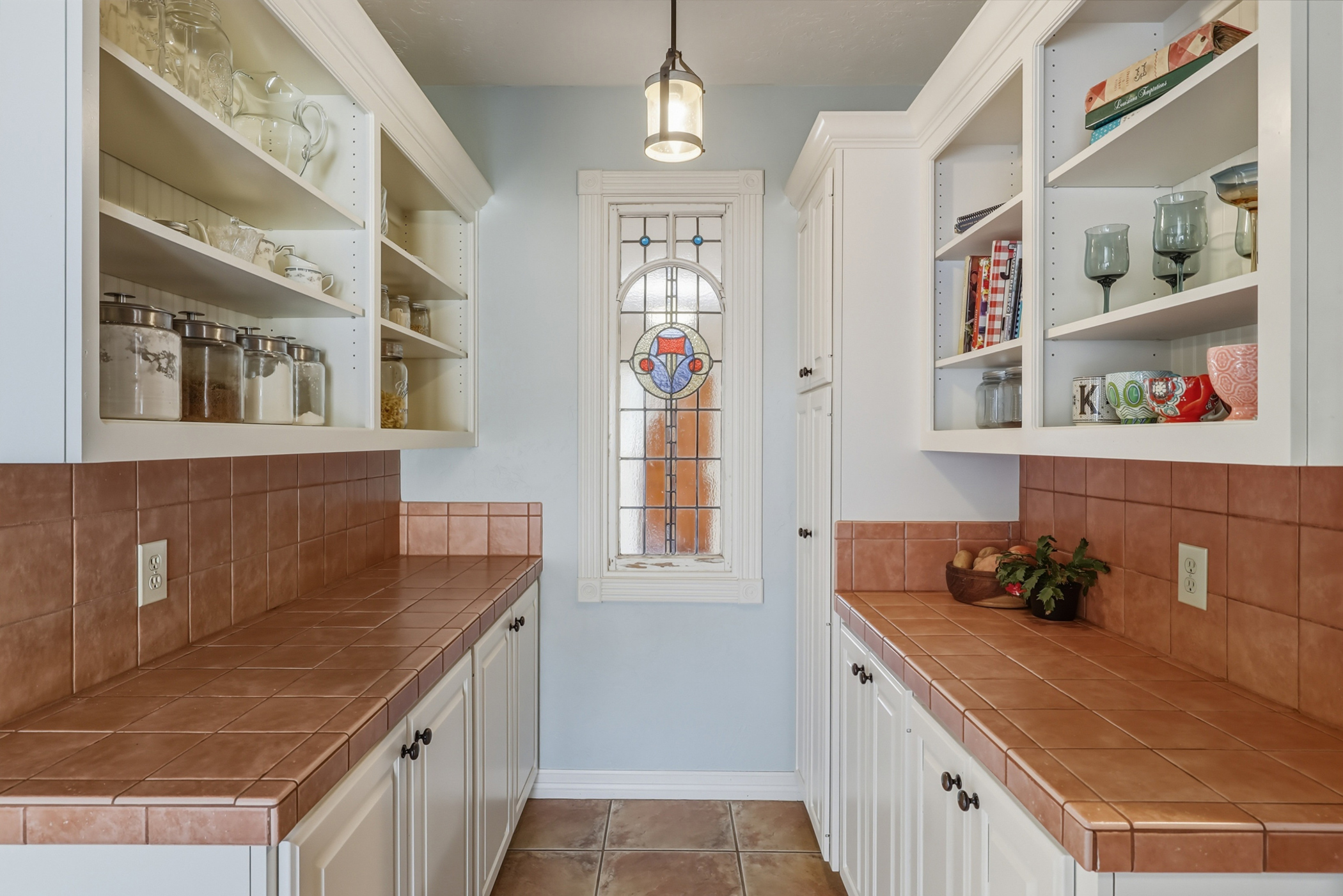 island, abundant counterspace, extensive cabinetry, and a butler’s pantry. The living room has such a homey vibe with the built in fireplace and expansive built ins to display pictures and family heirlooms. Walls of windows along the back of the home