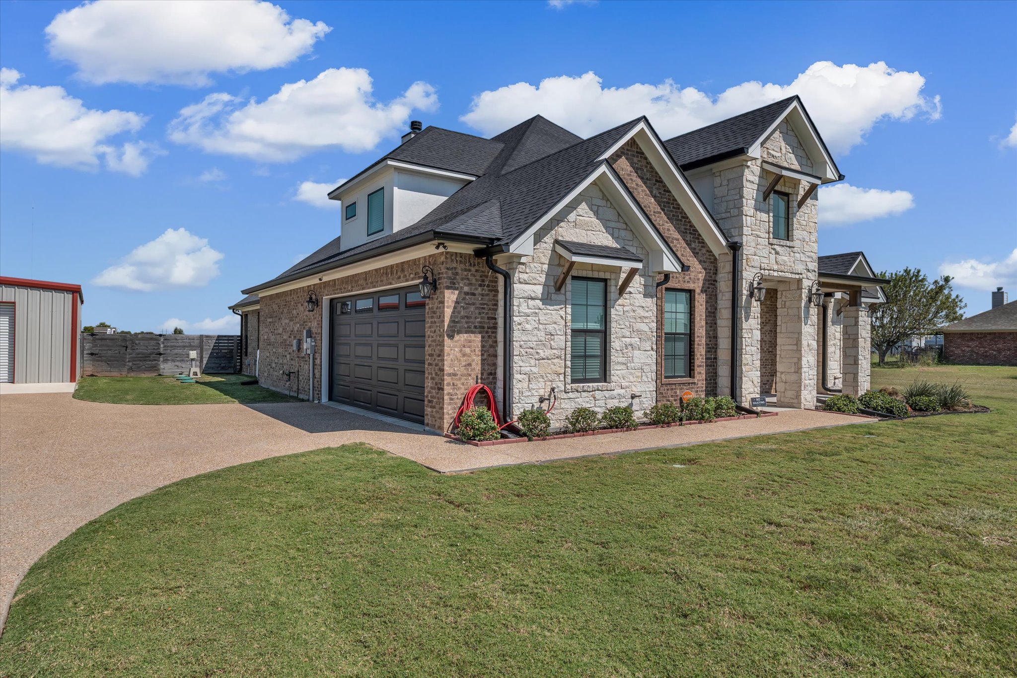 Come check 203 Hatter, in Cotton Ridge Addition in Moody, Texas! This beautiful two-story home, built in 2022, spans approximately 3,014 square feet and sits on a one-acre lot. With four bedrooms, three bathrooms and a bonus room upstairs, this residence delivers modern comfort and plenty of space both inside and out. Inside to an inviting open concept living and dining area anchored by a gas fireplace, creating a warm gathering space for family and friends. The kitchen is designed for both functionality and style, showcasing an island, pantry, and electric appliances—perfect for meal prep and entertaining. The primary suite provides a true retreat with a garden tub, double shower, and dual vanities, blending relaxation and convenience. Upstairs, a spacious bonus room with a full bathroom with flexibility as a game room, or guest suite, complete with closet storage. Other interior highlights include a utility room with built-in cabinetry, a separate laundry area, and energy-efficient systems throughout. Outside, enjoy brick and stone veneer construction, a covered patio for outdoor enjoyment, wood fencing for privacy, and an attached two-car garage. The 20’ x 30’ workshop with electricity adds even more versatility for hobbies, storage, or projects. The home is served by city water, co-op electric, and an aerobic septic system, all within the Moody ISD.