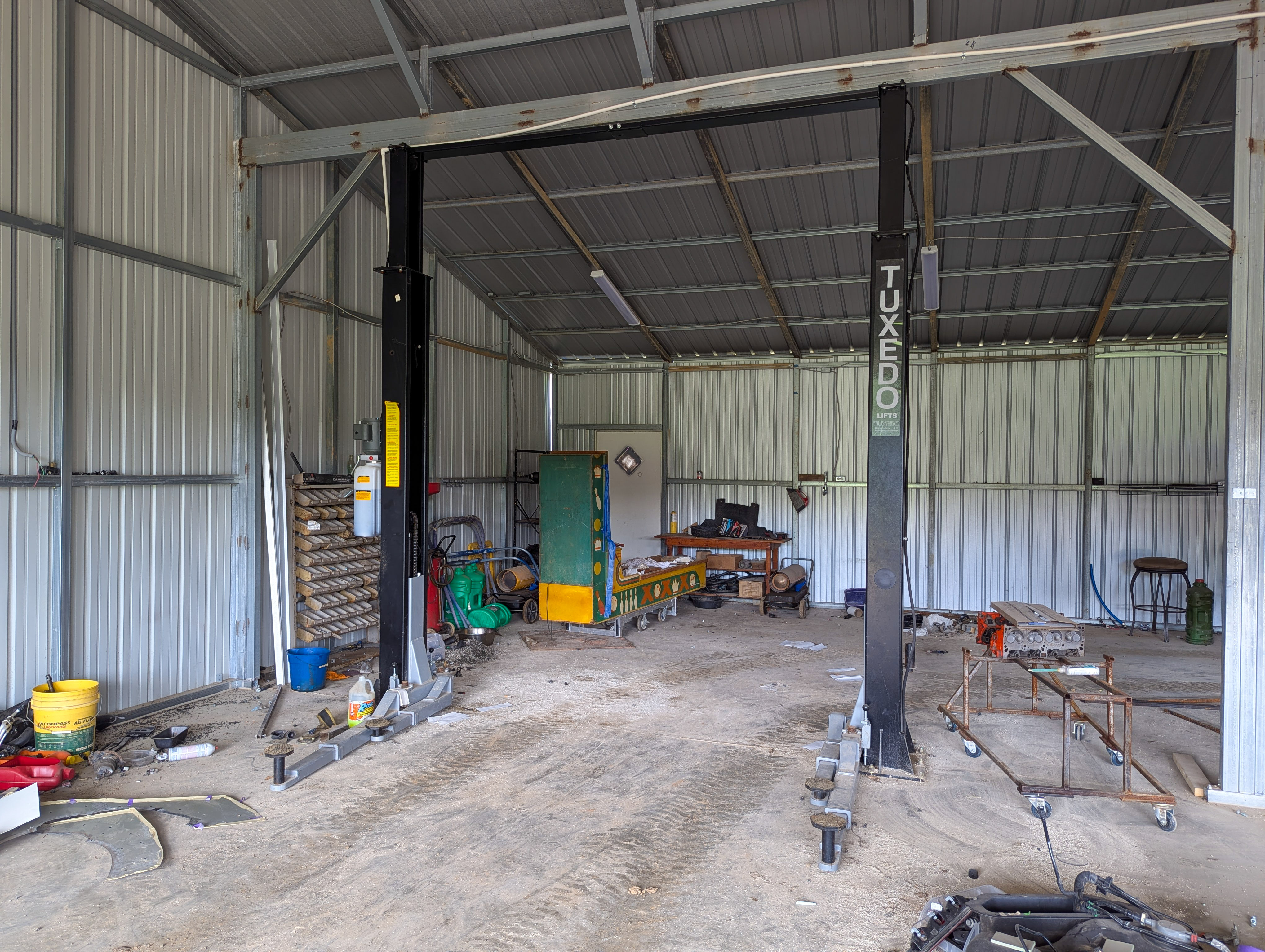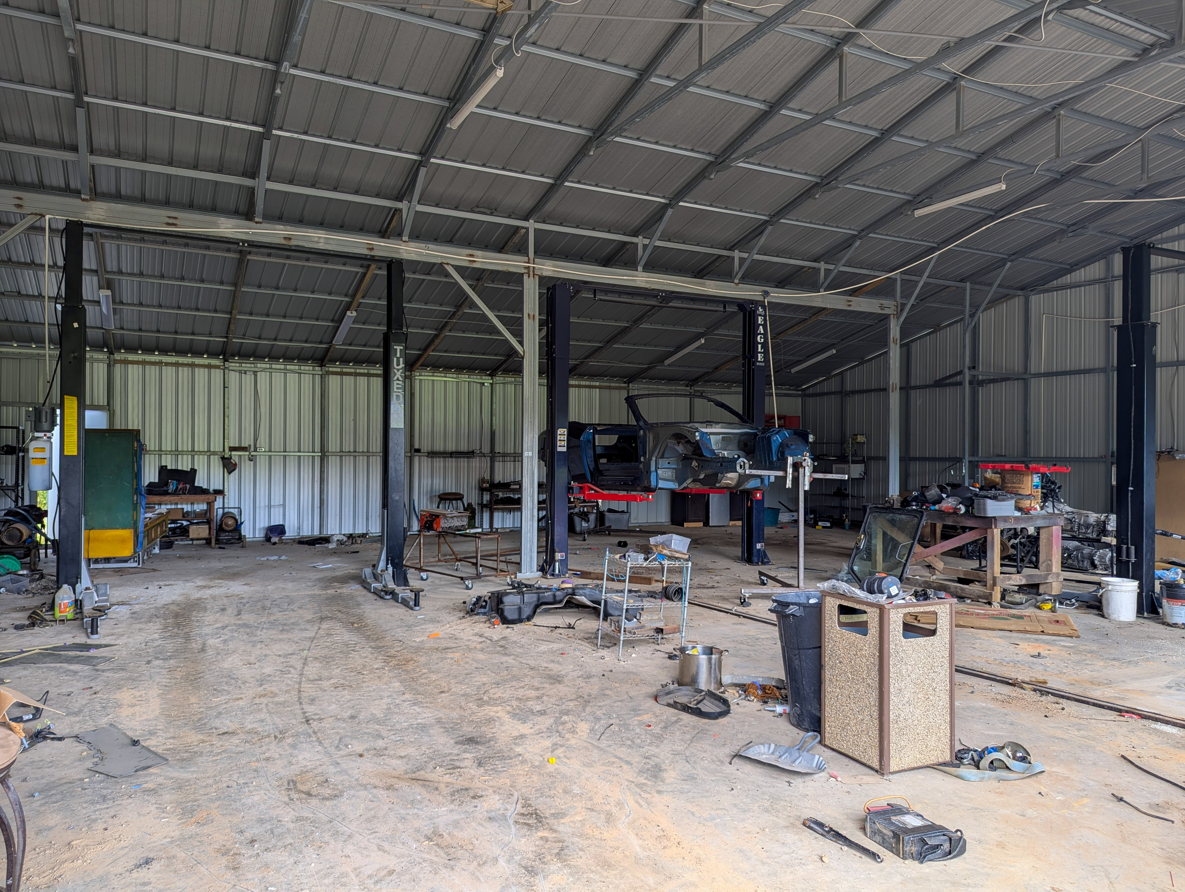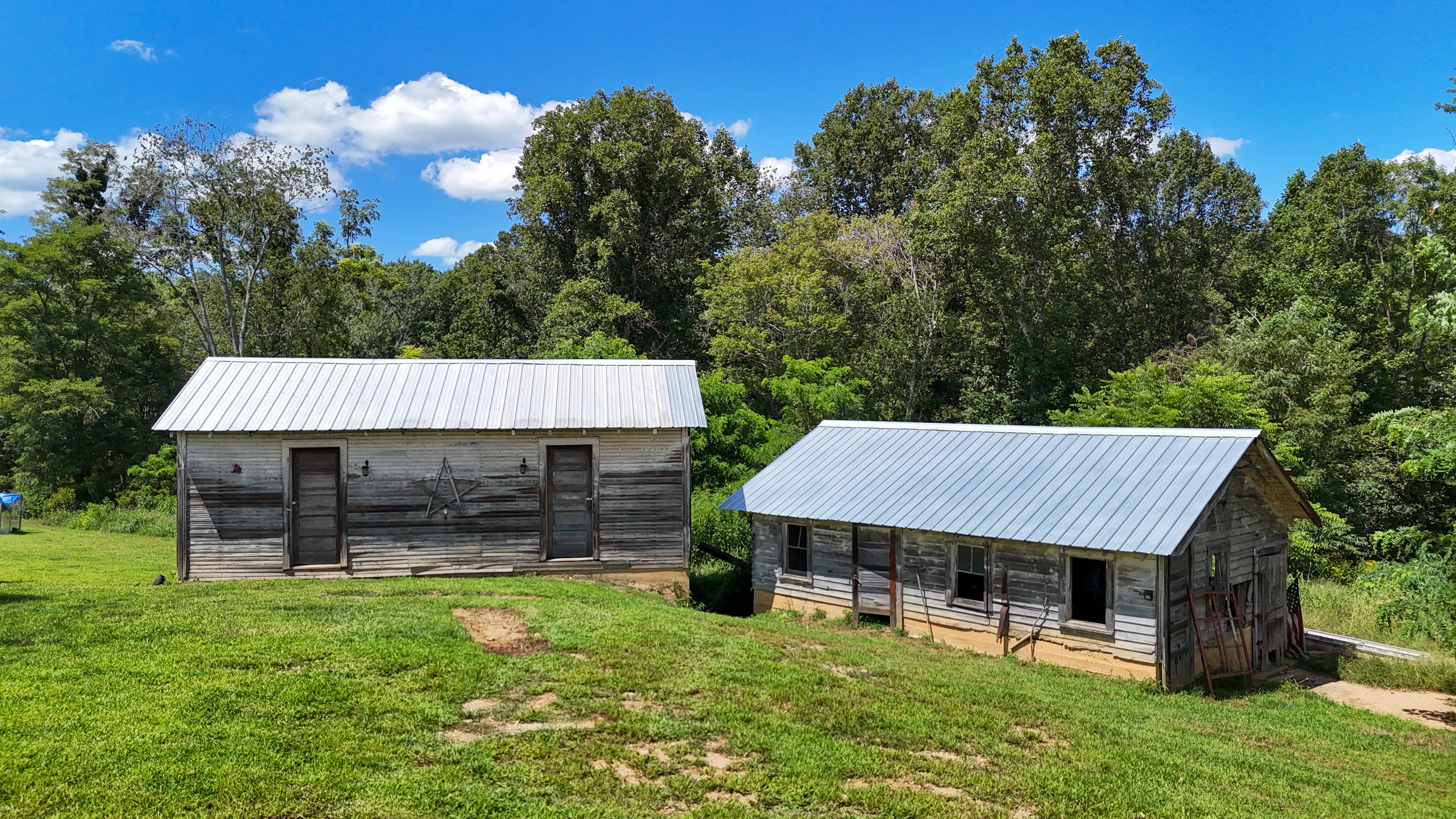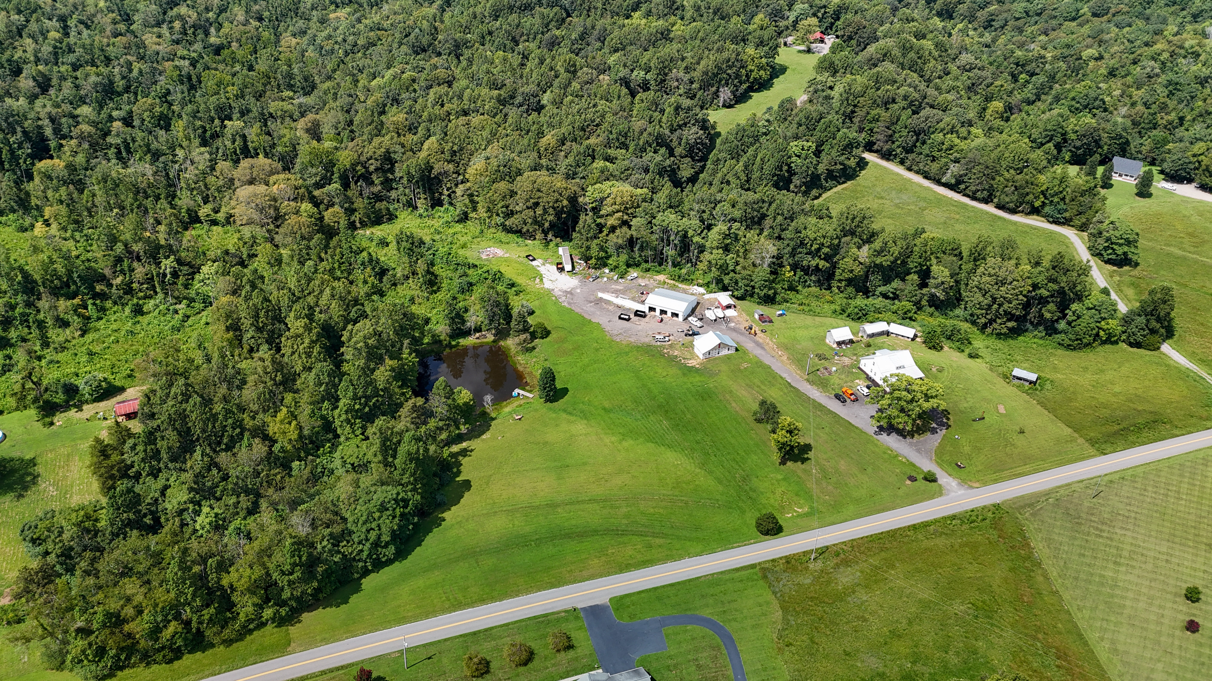 Outside, the land is a beautiful mix of open and wooded acreage with paved state road frontage. There is a large workshop with three vehicle lifts and roll-up doors, perfect for automotive work, hobbies, or business use. Several additional outbuildings provide space for storage or creative projects, and a private pond stocked with fish offers a peaceful spot to relax or enjoy recreational fishing.
