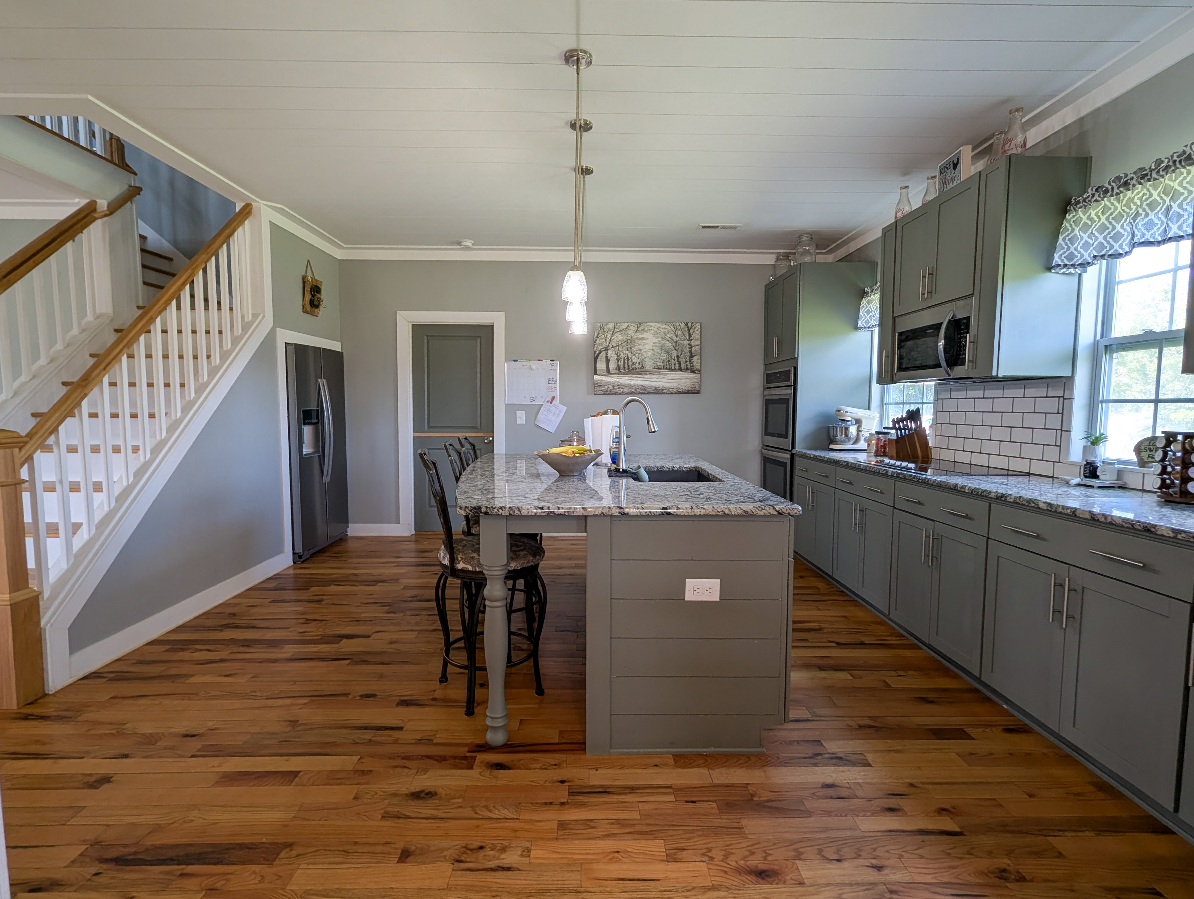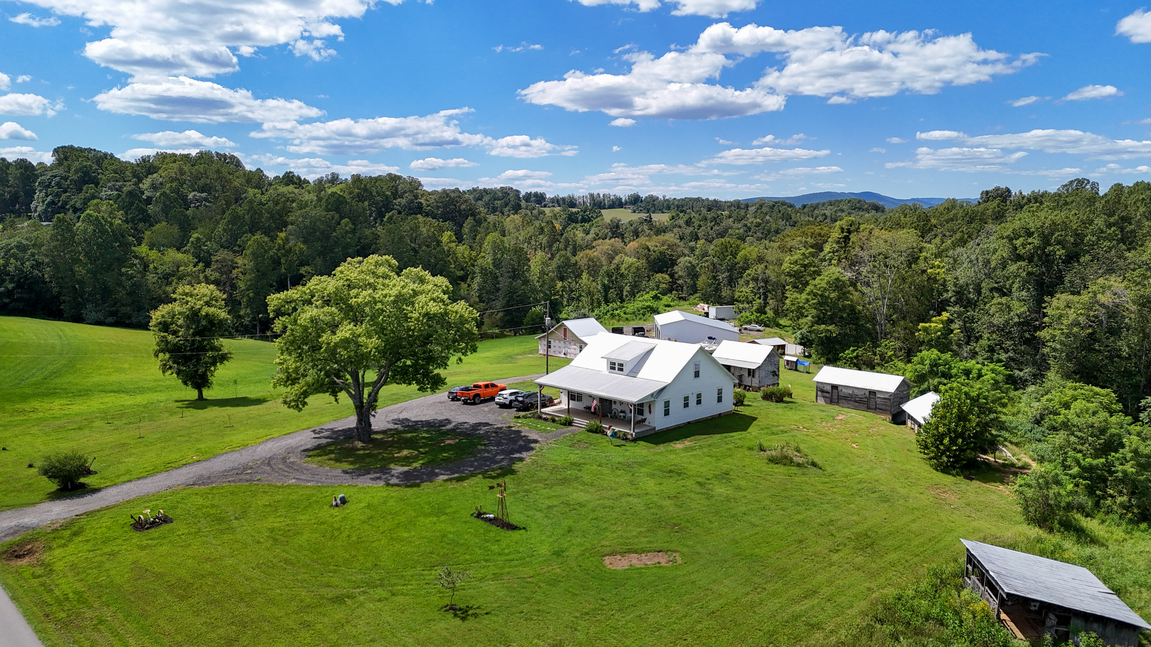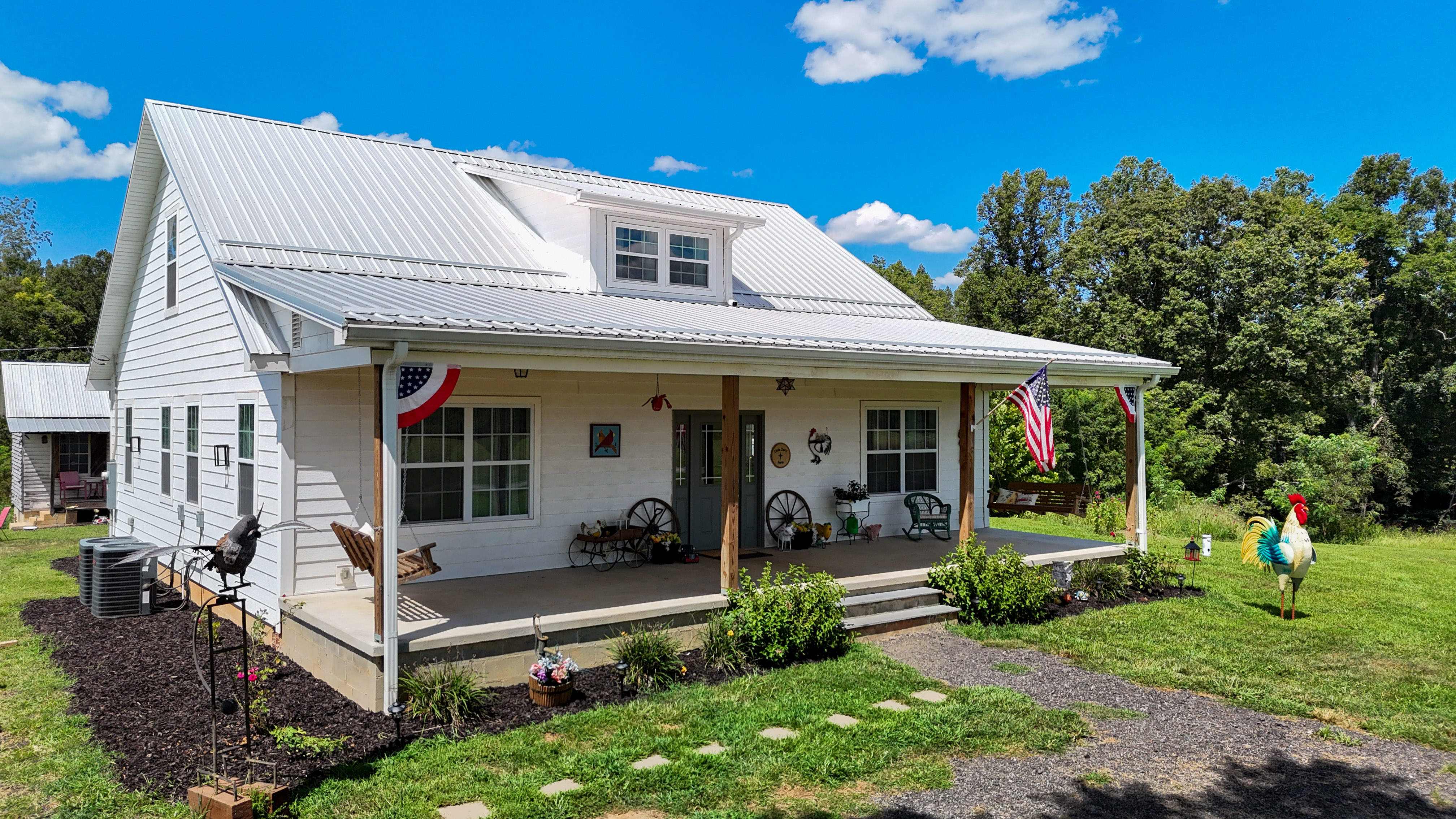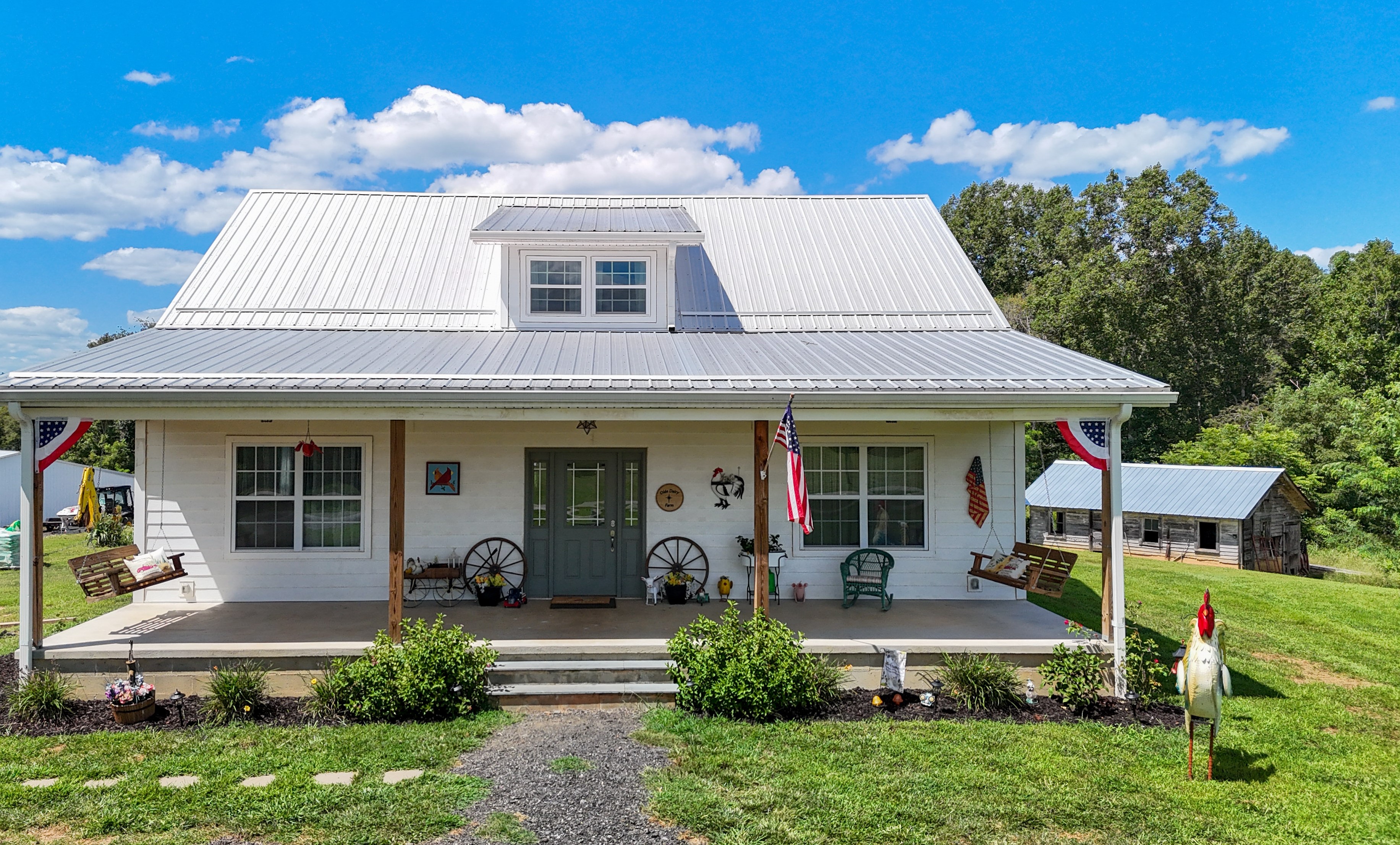 Charming fully renovated country home on 18± acres with pond, workshop, and guest house. This two-story home is located at 3885 Ayers Orchard Road in Stuart, VA, set on a beautiful mix of open and wooded land with paved state road frontage. Completely remodeled from the studs between 2021–2023, this home blends modern comfort with timeless country living. The renovation included raising the ceilings and lifting the roof to create added height for the upstairs bedrooms, along with durable composite exterior siding and two efficient heat pumps — one for each level.
