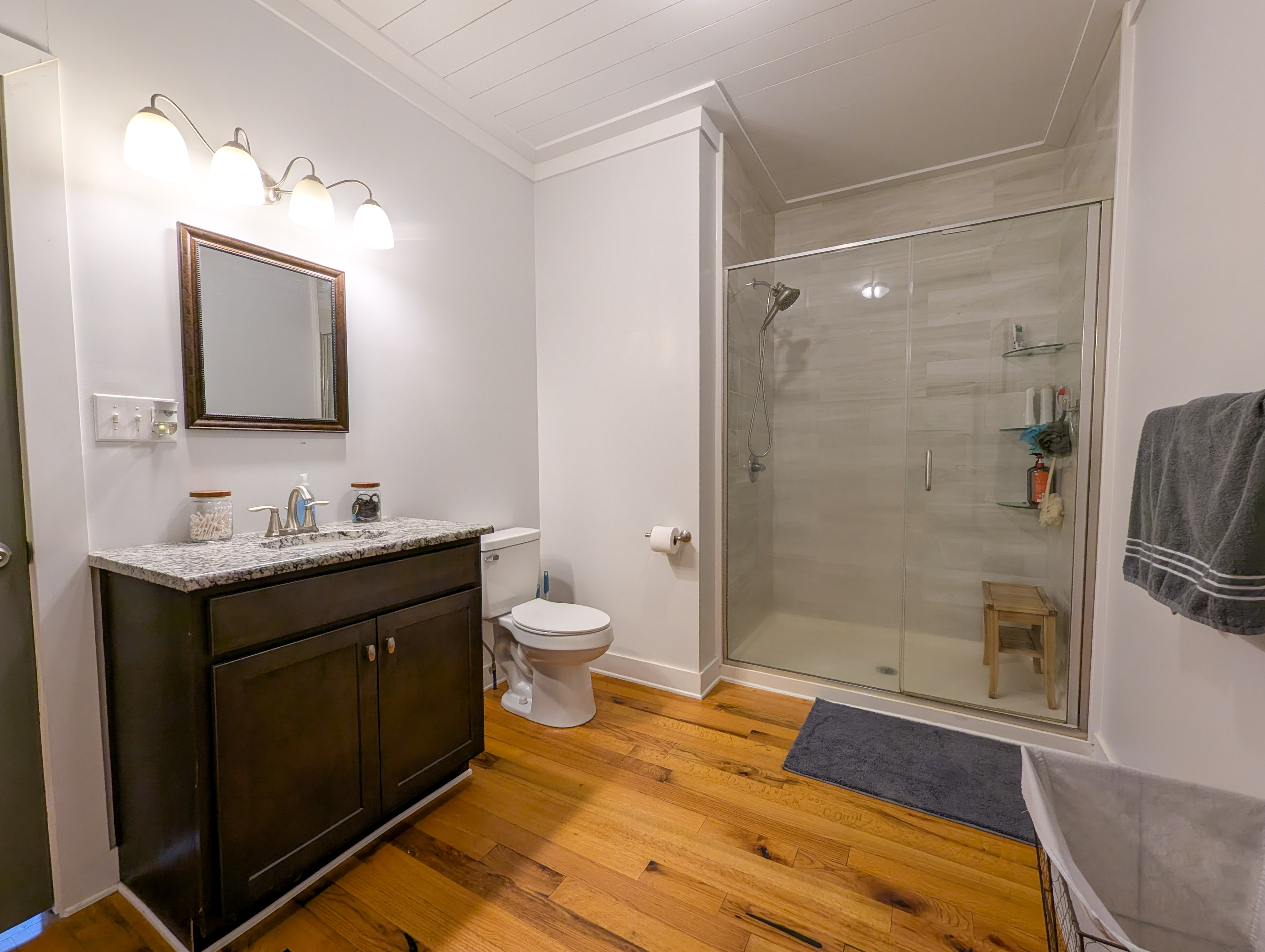 The property also includes the original home located just behind the main residence, previously occupied by the sellers during construction. This charming space offers open living, a living room, bedroom, and full bath — ideal for a guest house or in-law suite.