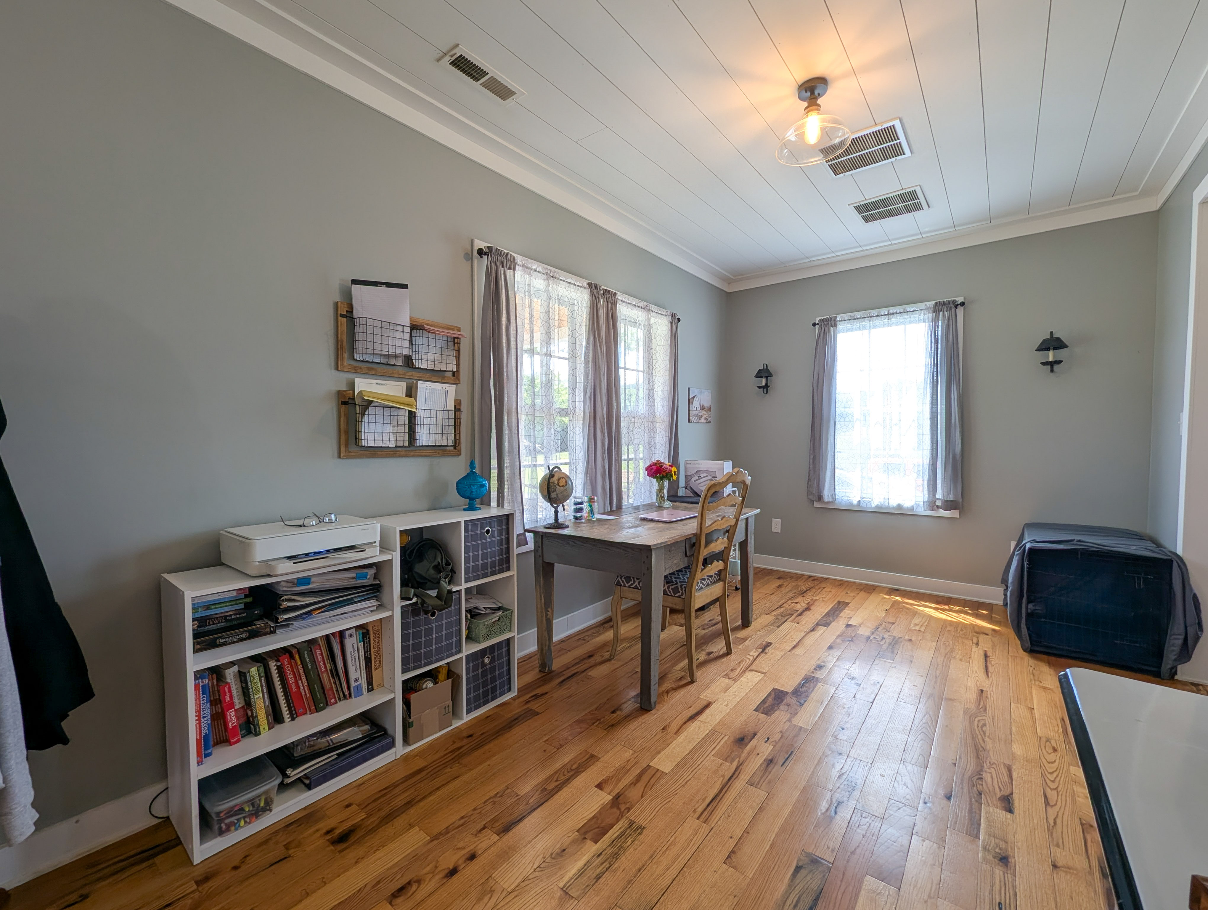 The main level features a spacious kitchen with center island that opens to the dining area and inviting living room, perfect for gatherings. You’ll also find a foyer/office, half bath, bonus room with exterior access, laundry area, and a large primary suite with private en-suite bath. The upper level is thoughtfully connected with a generous landing area, full bath, and two comfortable bedrooms, creating a seamless flow between living spaces.