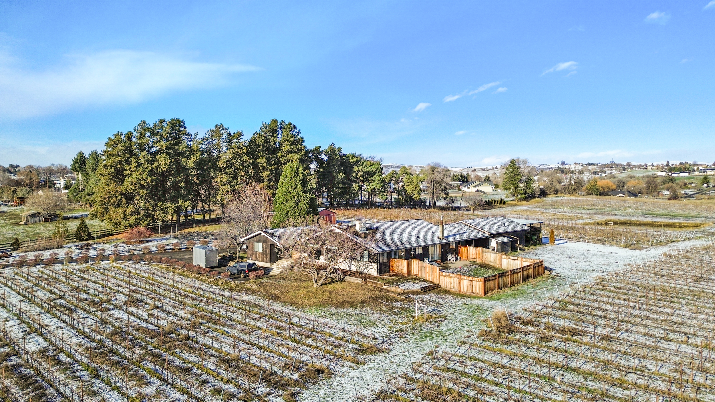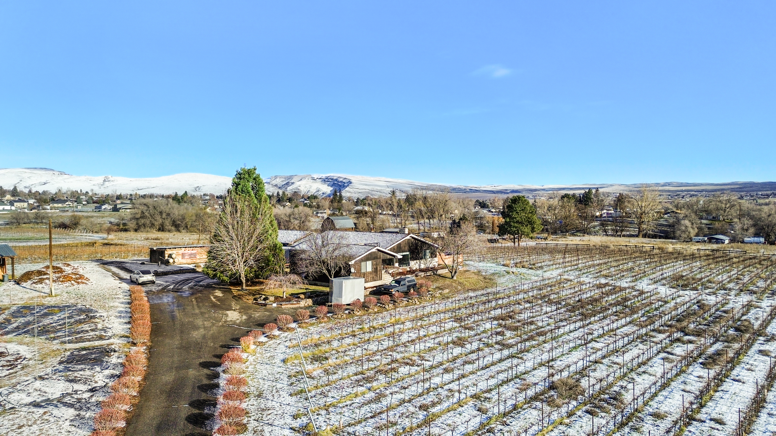 Unique vineyard property in Selah. 5.41 acres with a large, single level, 3 bedroom, 2 bath home in a great Selah area. Large living areas with sunken living room, an extra family room and a bonus room/office. Large chef's kitchen with island eating area open to the dining room and built-in storage. All of the house has views of the surrounding vineyard and terrain. Basement garage and shop area provide additional space with a detached shop, carport and breezeway connected to the house. The 5.41 acre lot includes additional pole building (20x52) and storage shed (15x26) as well as around 3.5 acres of wine grapes. Additional surrounding acreage (3 more lots - up to 24.85 acres total) is also available and listed for sale. This is a dream property located minutes from downtown Selah and surrounded by other country homes and big views.