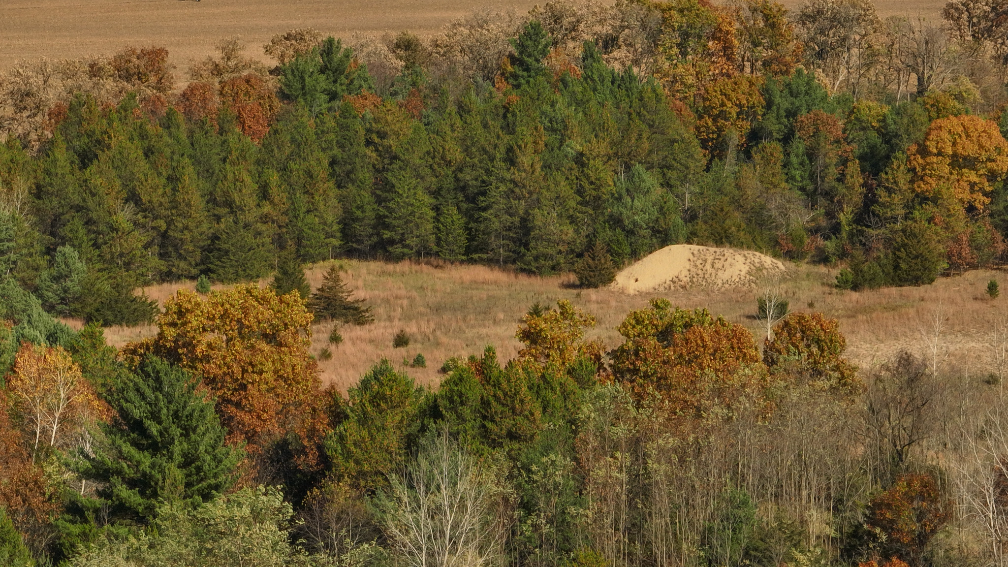 The land itself is what truly sets this tract apart. This former gravel site many years ago that has evolved into a whitetail wonderland, where rolling prairie openings transition into dense bedding thickets, edge habitat and pockets of mature timber canopy. The diversity is exactly what produces consistent deer movement—thick sanctuary cover for bedding, open feeding areas for nutrition, and natural travel corridors connecting it all together. It’s the kind of layout that funnels deer predictably and holds them year-round.