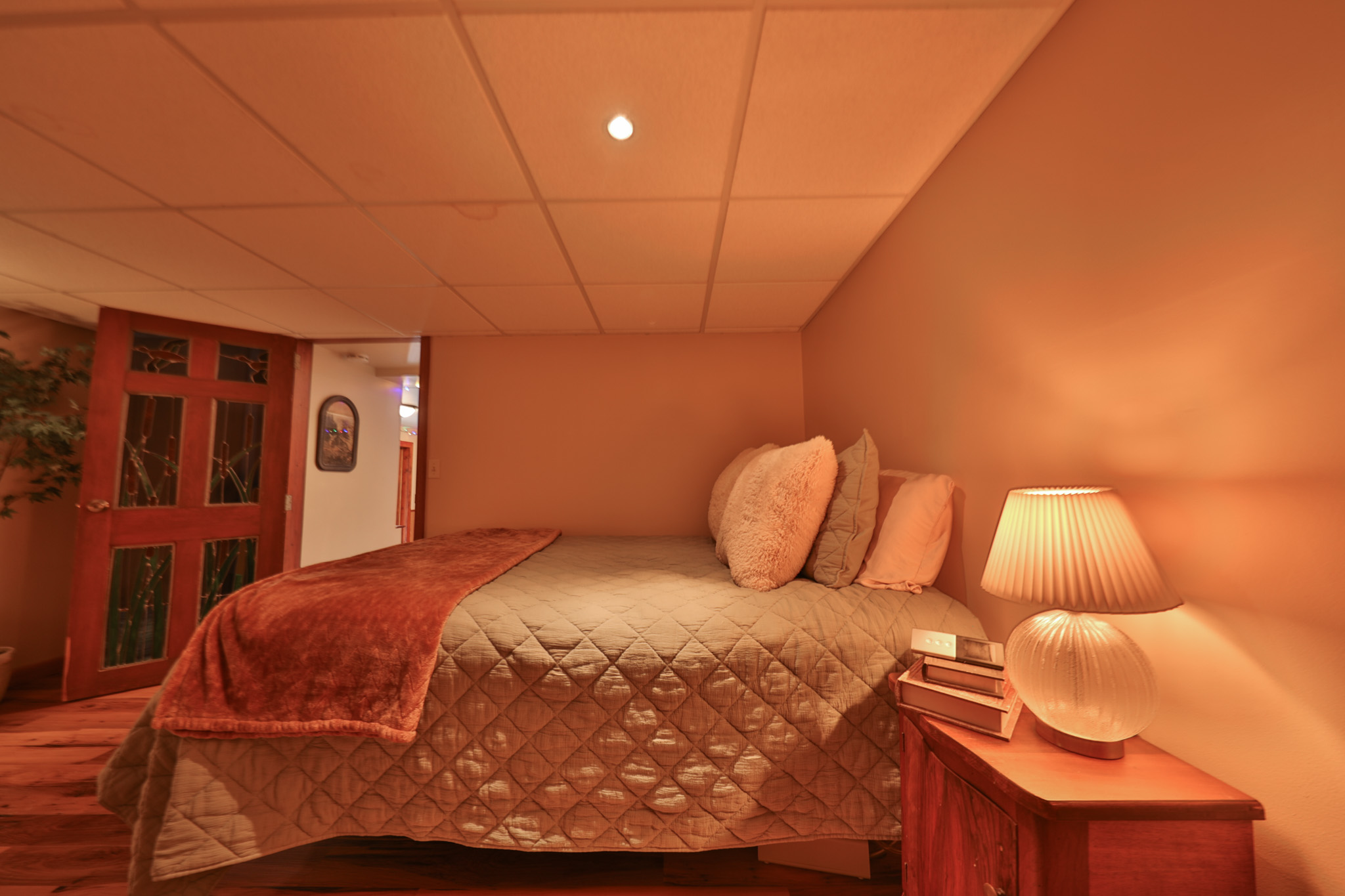 The East wing welcomes you through a tuck-under garage leading into a finished lower-level den. Here you’ll find a full bath with tiled shower, a spacious rec room, storage area and laundry room, along with a bedroom tucked privately off the den.