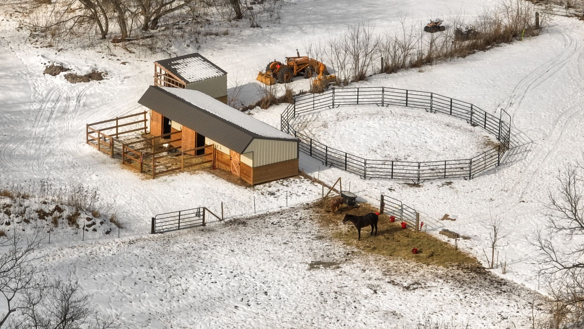 A 30’ x 50’ shed with concrete floor and power provides ample storage for vehicles, equipment or livestock housing. Two overhead doors face the driveway, balanced by a sliding door on the pasture side for easy access. A brand-new loafing shed with round pen adds immediate functionality for horse enthusiasts, while frost-free hydrants at both the open field and shed ensure year-round water access.