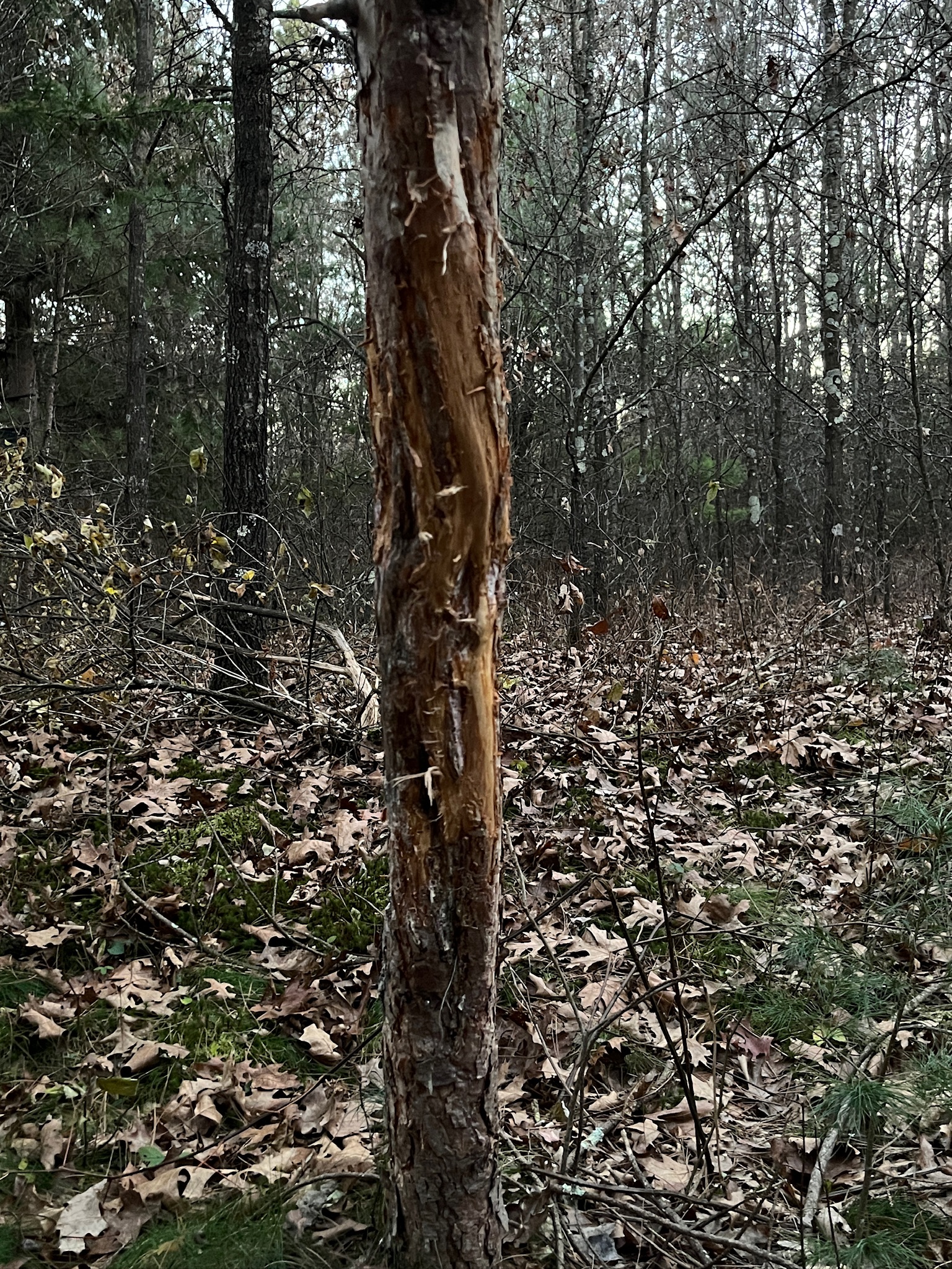Terrain transitions from brushy riverbottom flats to rolling bluff country, featuring deep, timbered ravines that provide thermal cover, secure bedding, and natural travel corridors. The timbered acres are a balanced mix of mature hardwoods and pine, creating excellent edge habitat and year-round cover.